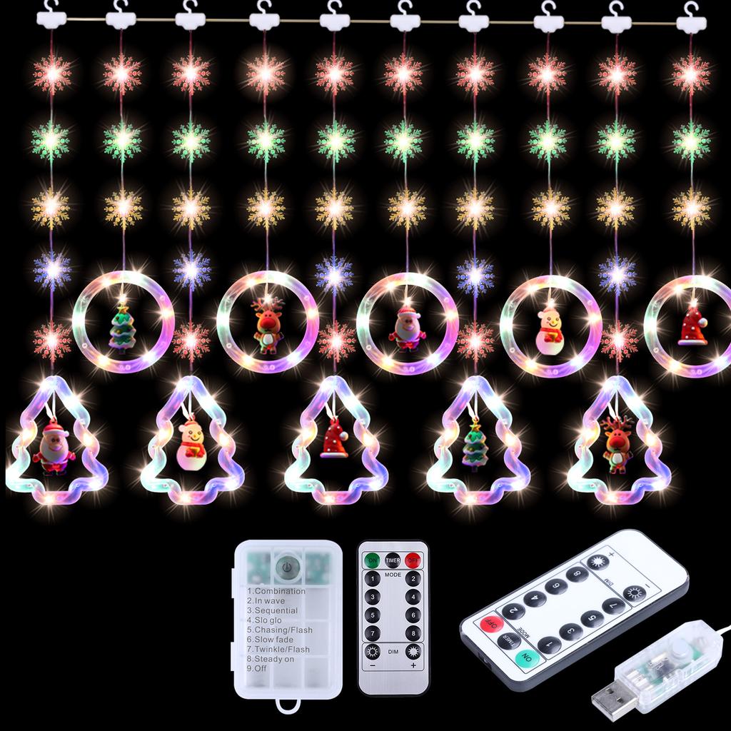 Рождественский свет, рождественские фонари для окон в помещении, светодиоды 3M 100, 8 режимов, светильники для штор с рождественскими звездами, подвесные светильники с питанием от батареи и USB с украшениями Санта-Клауса, гирлянды для Рождества, спальни