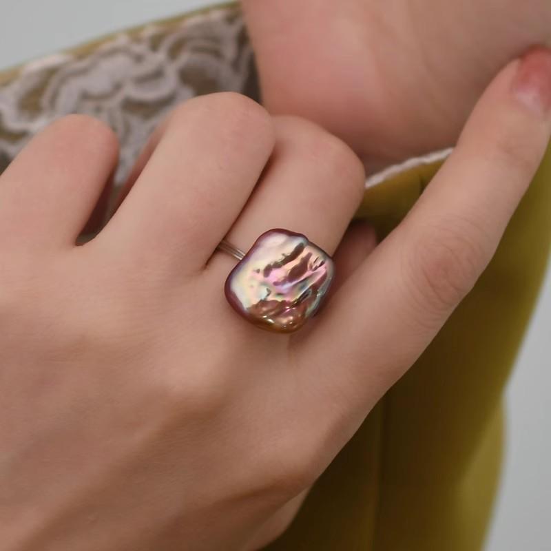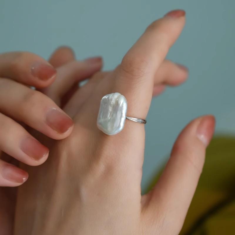 Кольцо с натуральным нерегулярным жемчугом в стиле барокко, все тело, серебро 925 пробы, минималистичная элегантность для девочек