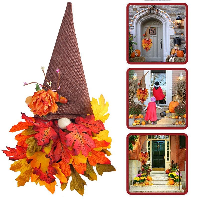 Осенние венки для входной двери, гном, кленовые листья, венок, украшение на День Благодарения