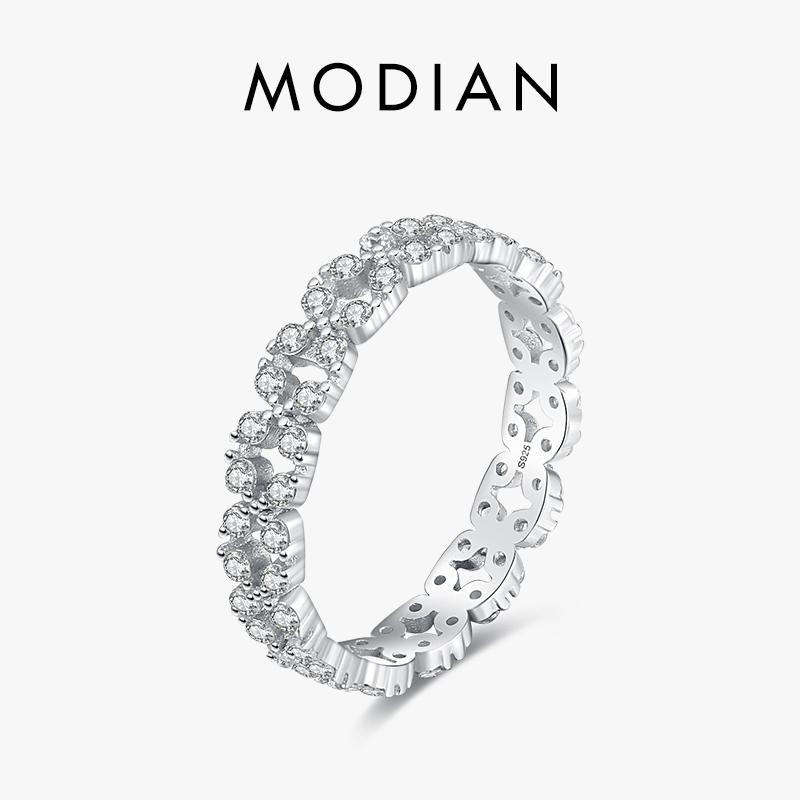 MODIAN Стерлингового серебра 925 пробы, геометрические штабелируемые прозрачные кольца на палец с CZ для женщин, свадебные эффектные ювелирные изделия
