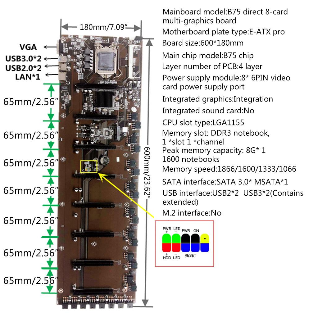 Новая материнская плата для настольных ПК для майнинга BTC B75-BTC 8PCI-E B75 LGA 1155 DDR3 16G SATA3 USB3.0 ATX BTC