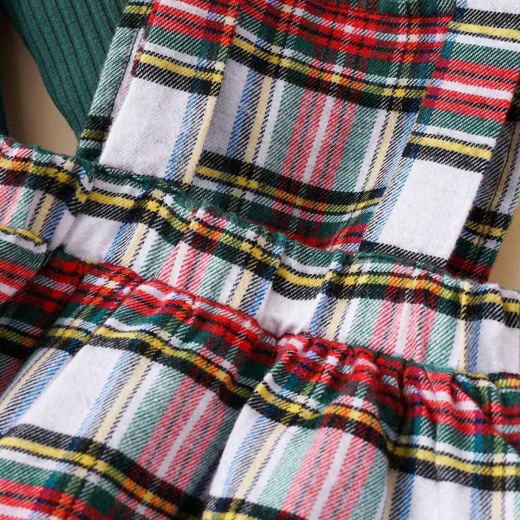 Осенние наряды для маленьких девочек, однотонные комбинезоны в рубчик с круглым вырезом и длинными рукавами, оборками, клетчатые юбки на подтяжках, повязка на голову, комплект одежды из 3 предметов