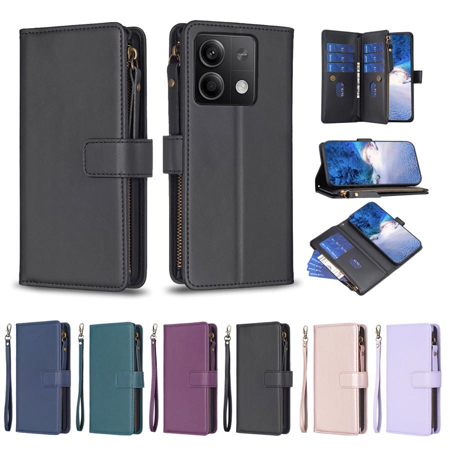 Роскошный 9-держатель для карт, карман на молнии, магнитная застежка, подставка, противоударный кожаный флип-чехол для Motorola Moto E13 G73 G14 G13 G23 G53 Edge 40 5G