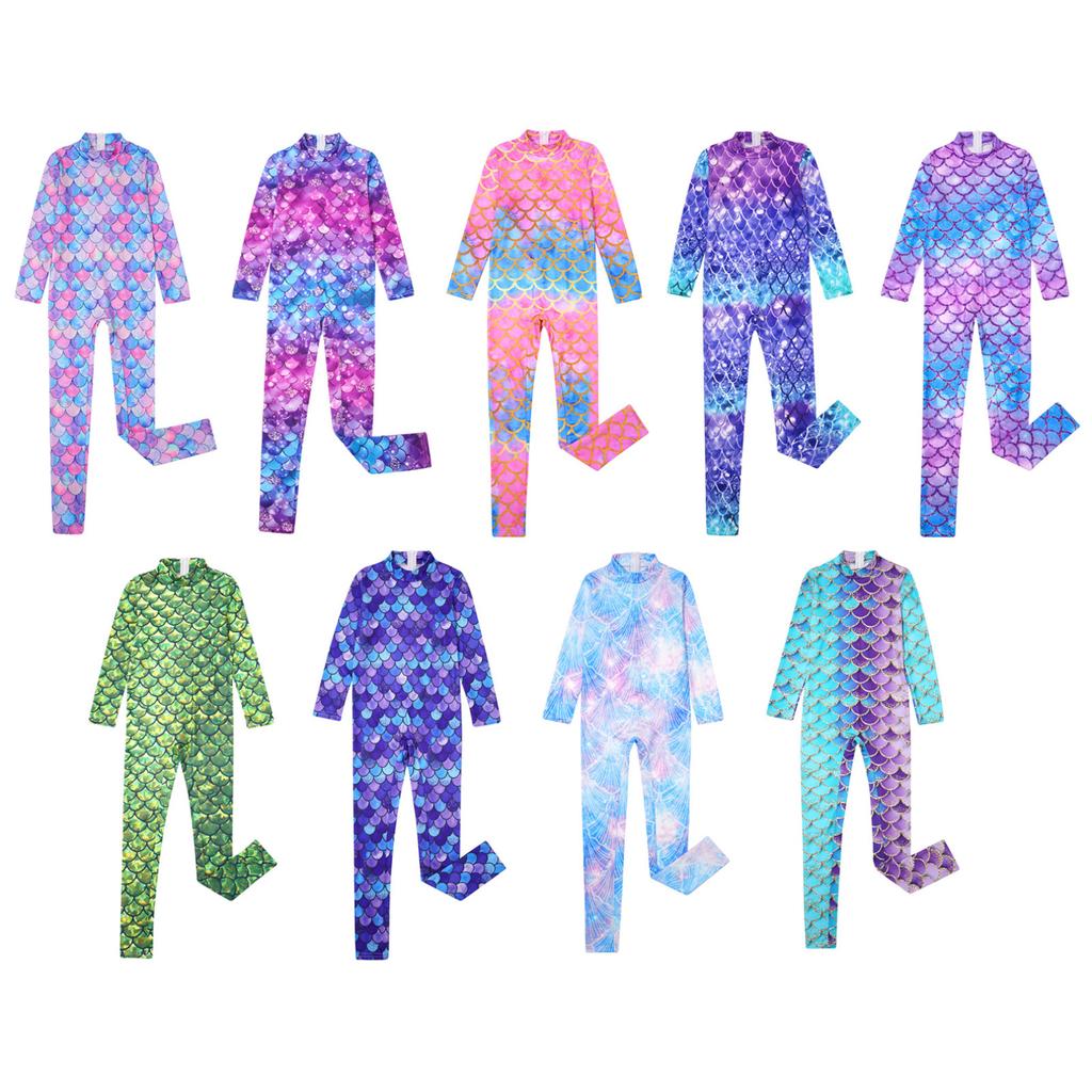 Гимнастический купальник для девочек, комбинезон русалки с длинными рукавами, боди, комбинезоны для акробатики, танцевальные балетные велосипедки