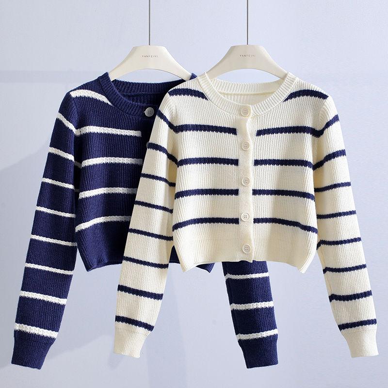 Короткий полосатый свитер в стиле ретро, женское пальто 2023, осень, осень 2023, японская свободная верхняя одежда с длинным рукавом, маленький вязаный кардиган, женский свитер
