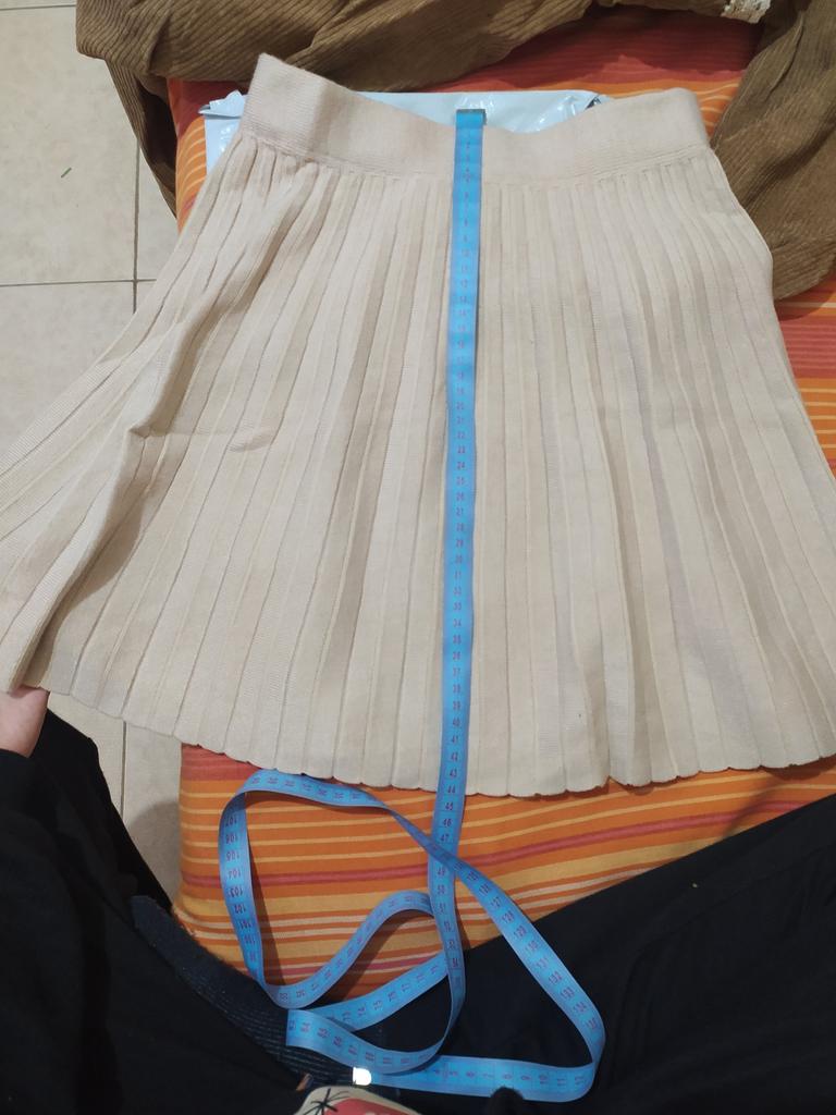 Размер не угадала, хотя ориентировалась по характеристике от продавца, юбка приятная на ощуп, мягкая, на весну. Но увы.теперь нужно куда-то пристраивать.