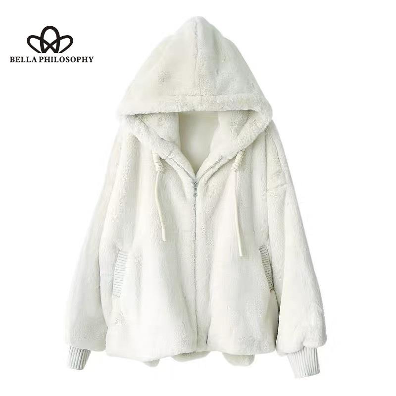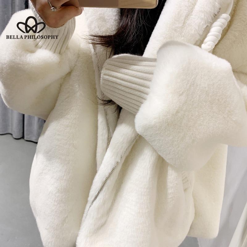 Осенне-зимнее пальто из искусственной овечьей шерсти, женское свободное пальто средней длины с капюшоном, утолщенное плюшевое пальто из кролика рекс