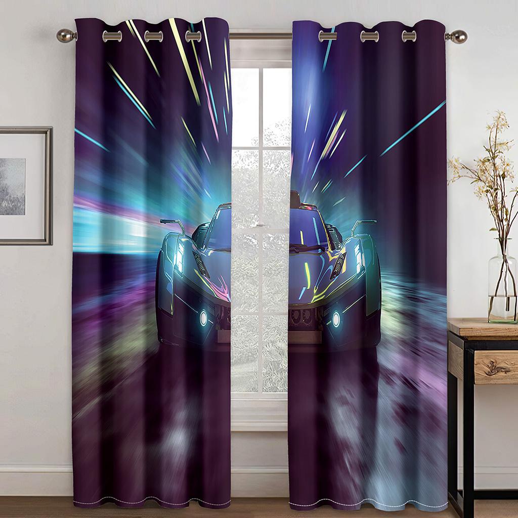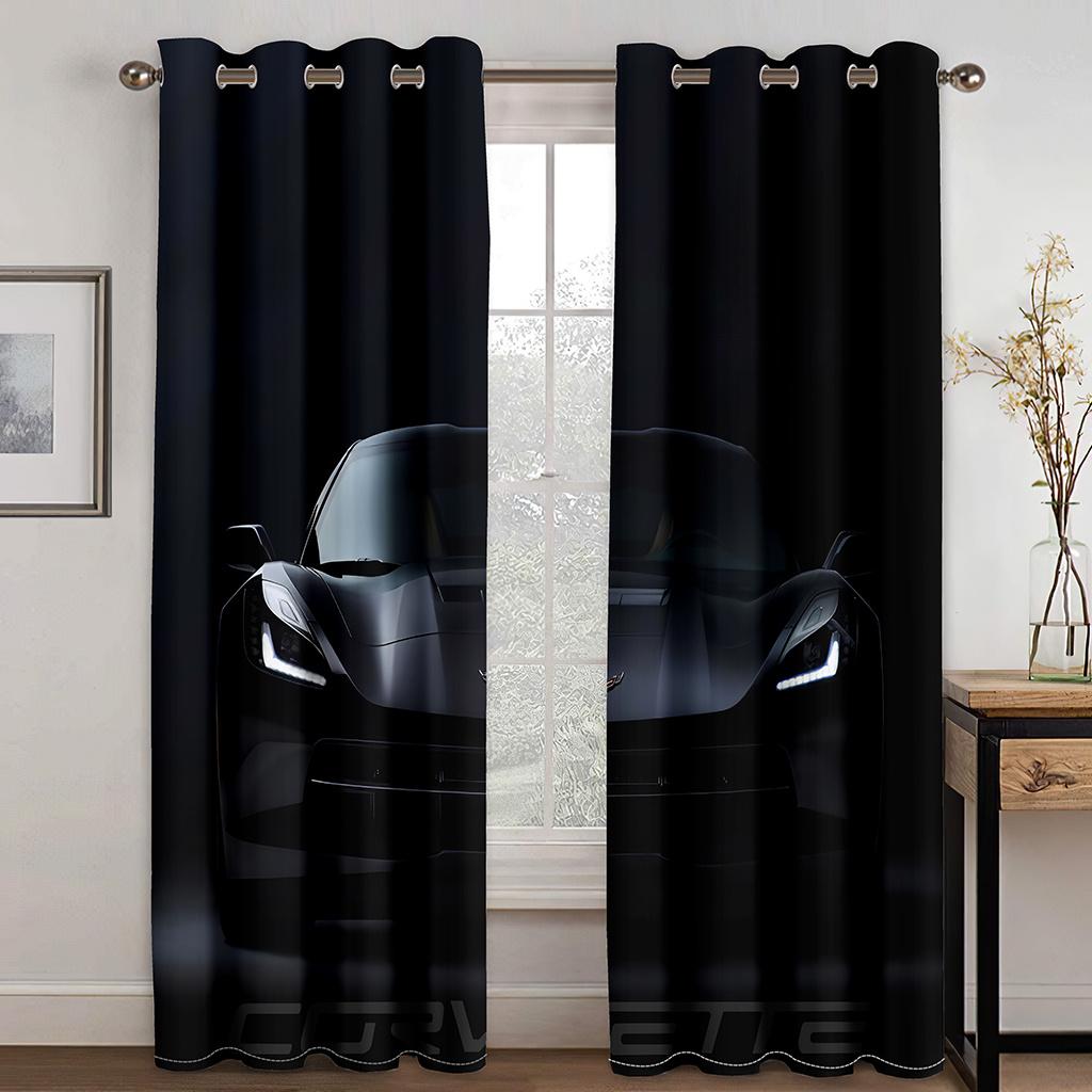 Толстые 2 шт., 90% затенение, крутые черные спортивные автомобильные роскошные плотные оконные шторы для спальни, гостиной, ванной комнаты, кухни, прихожей