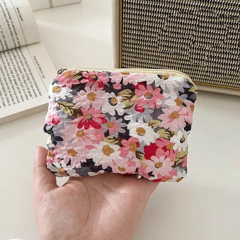 Женский милый мини-кошелек с цветочным принтом на молнии, клатч, кошельки, сумка для губной помады, кошелек для ключей, женский хлопковый дорожный мешок для хранения макияжа, сумка