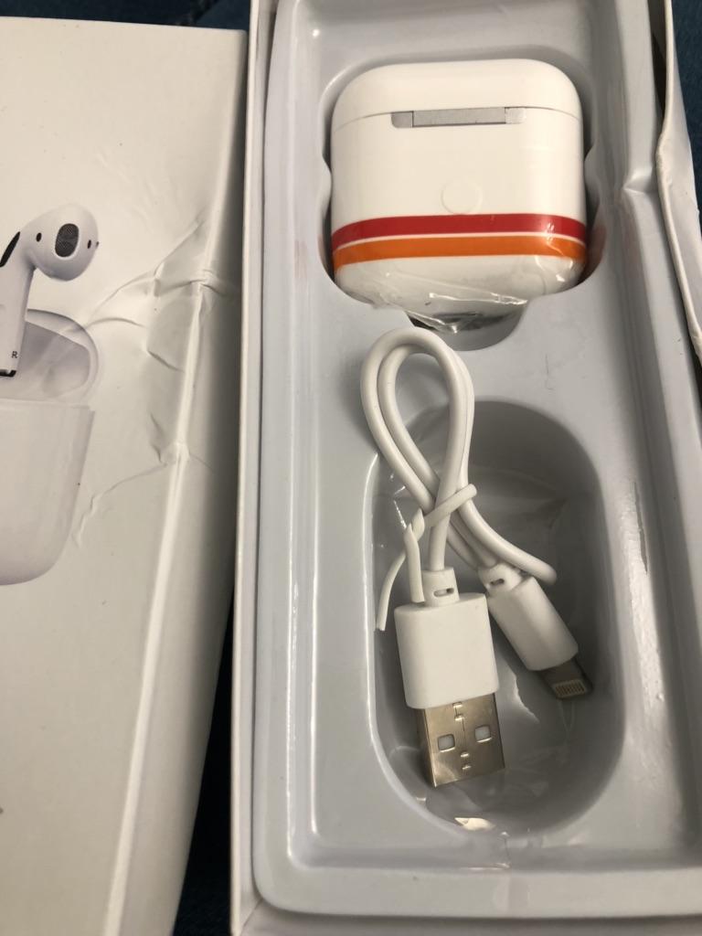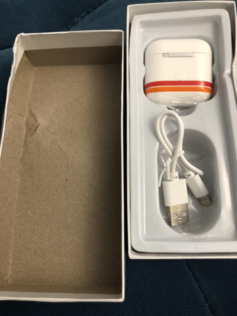 Хорошие наушники, в моих ушах держатся нормально, а у родных женского пола нет, ведь они большие. Такое чувство, что эти наушники в два раза больше, чем обычные наушники airpods. Звук хороший. Дистанция в два раза меньше чем у оригинальных airpods. В принципе это и не так уж важно, ставлю 4, потому что они не идеальны. По внешности они слегка поцарапаны, но если протереть не так уж и заметно, аккумуляторный блок тоже такой же, как наушники, по виду. А ещё крышка болтается.