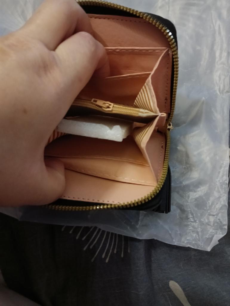 Кошелек хороший,правда не знаю еще,как туда запихивать деньги😂расчитывала,что будет немного большего размера.А в целом-замок качественный,красивый,хороший мини-кошелечек