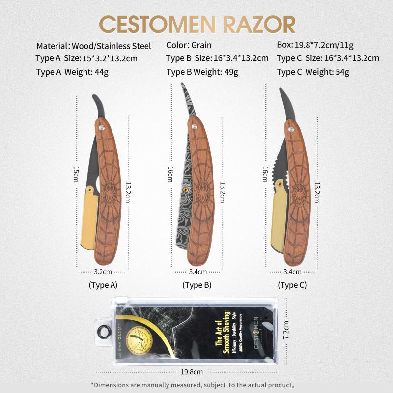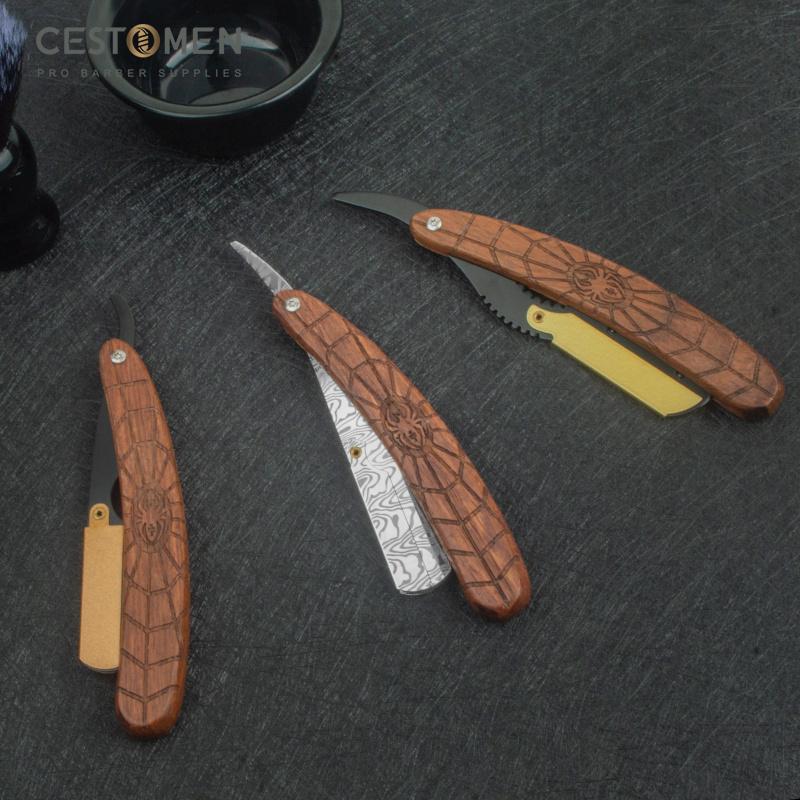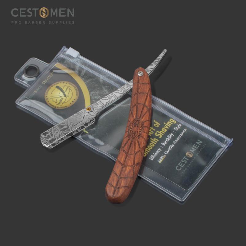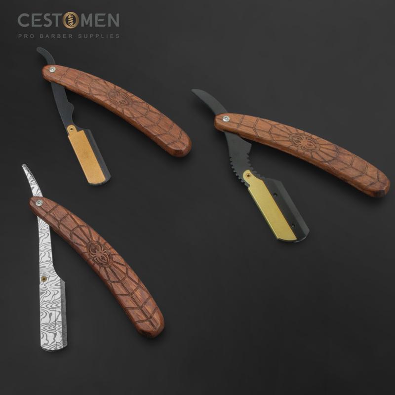 CESTOMEN Классический прямой бритвенный нож с деревянной ручкой из паука, инструменты для бритья бороды, бритва с одним лезвием для перерезания горла