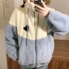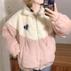 Зимние женские толстовки с капюшоном из бархата в стиле пэчворк на молнии с длинными рукавами из овечьей шерсти, флисовые пальто большого размера, повседневная корейская теплая белая толстовка