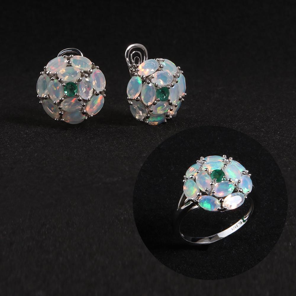 Серьги-кольца с натуральным опалом, изумрудом, комплект ювелирных изделий из стерлингового серебра 925 пробы, изысканные украшения для женщин, жены, хороший подарок — купить товар онлайн с бесплатной доставкой по всему миру!