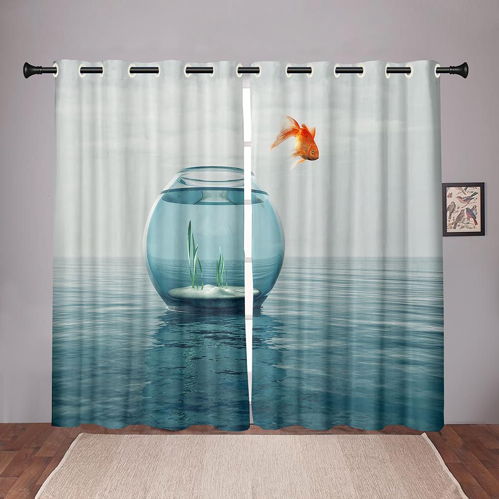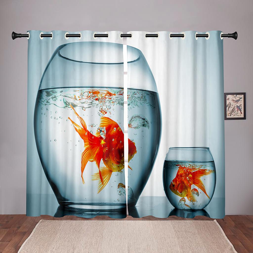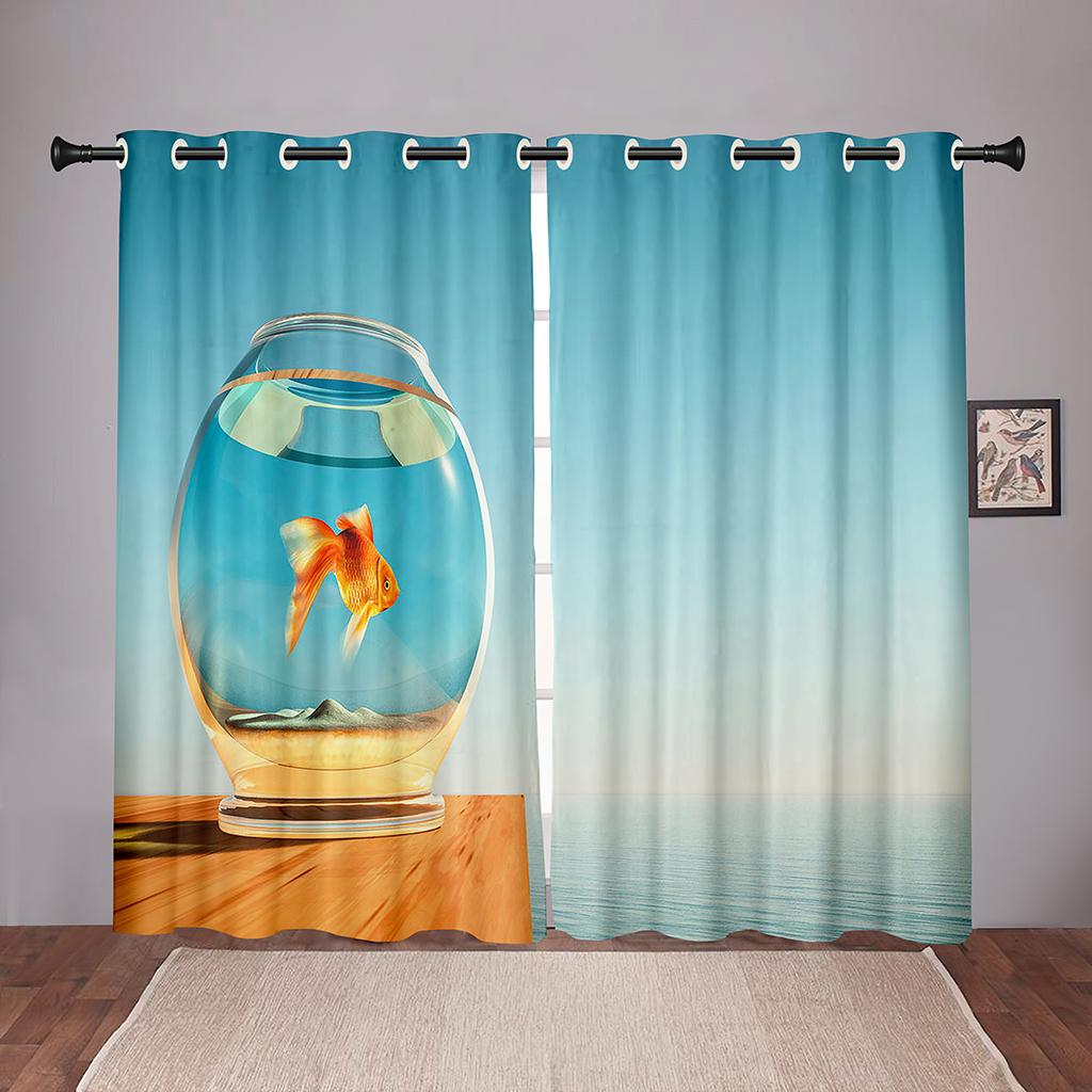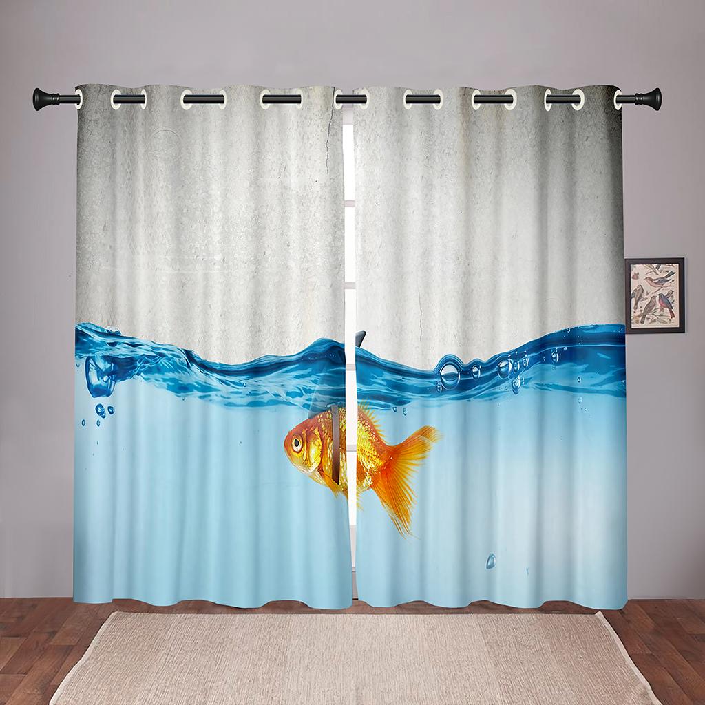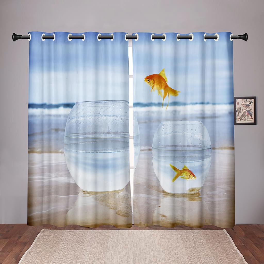 Плотные 2 шт., 90% затенение, Золотая рыбка, море, океан, пляж, затемненные оконные занавески с животными для спальни, гостиной, ванной комнаты, кухни, двери