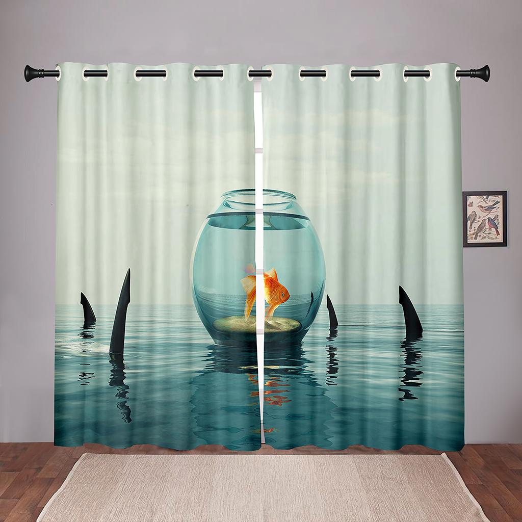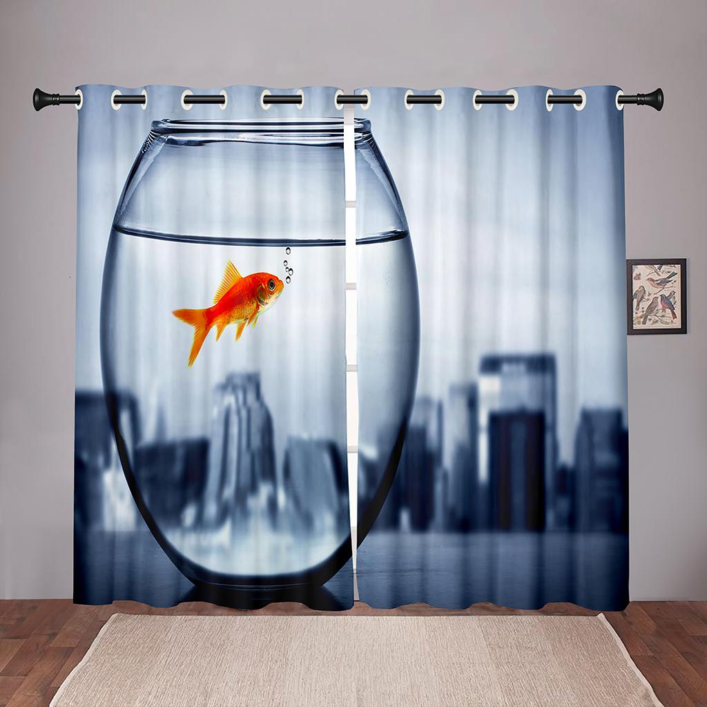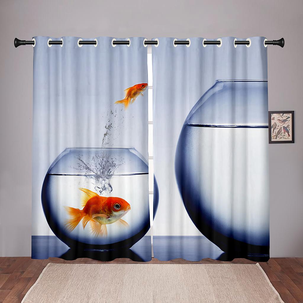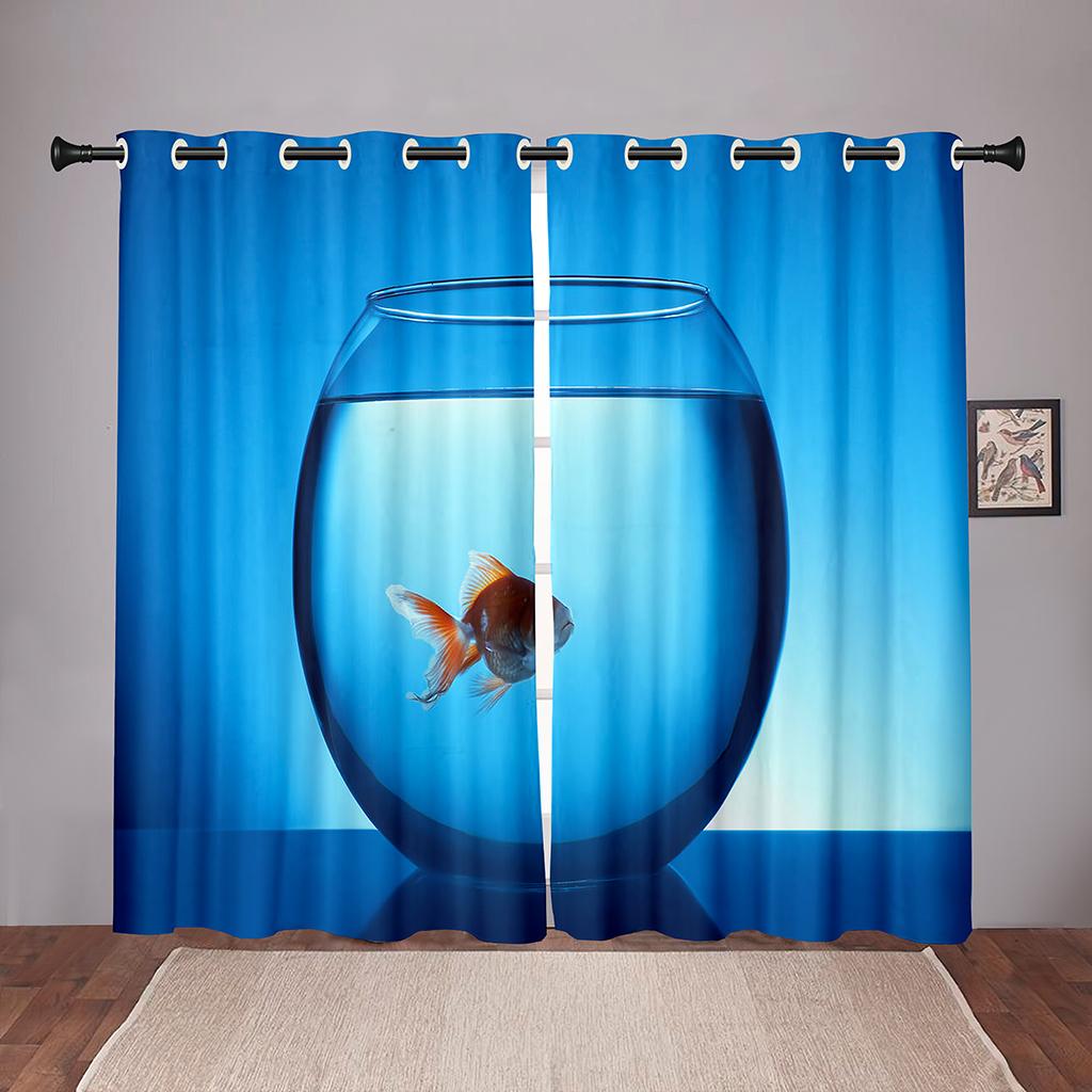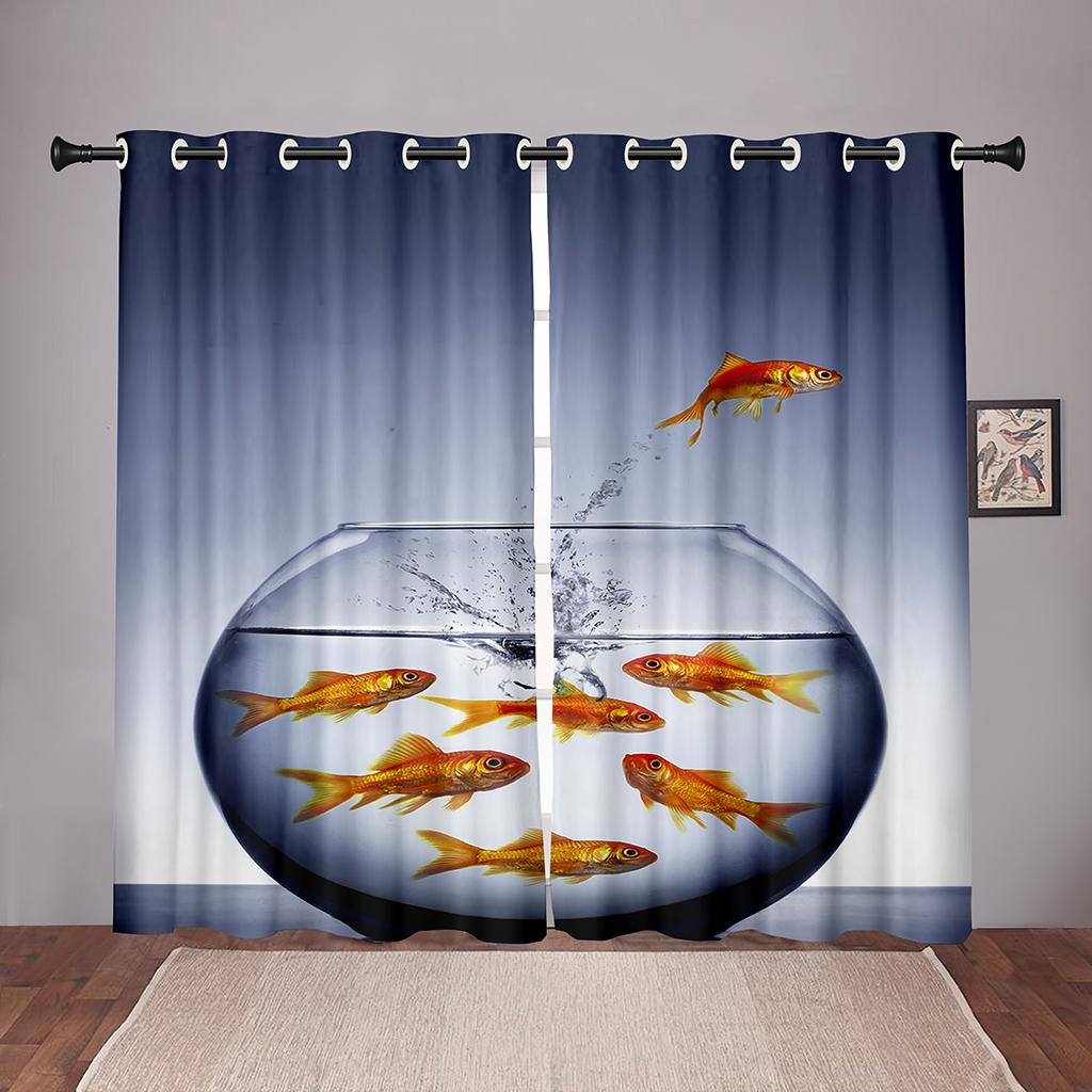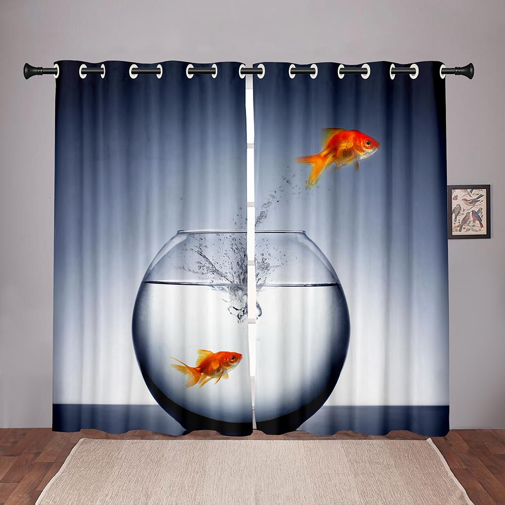 Плотные 2 шт., 90% затенение, Золотая рыбка, море, океан, пляж, затемненные оконные занавески с животными для спальни, гостиной, ванной комнаты, кухни, двери