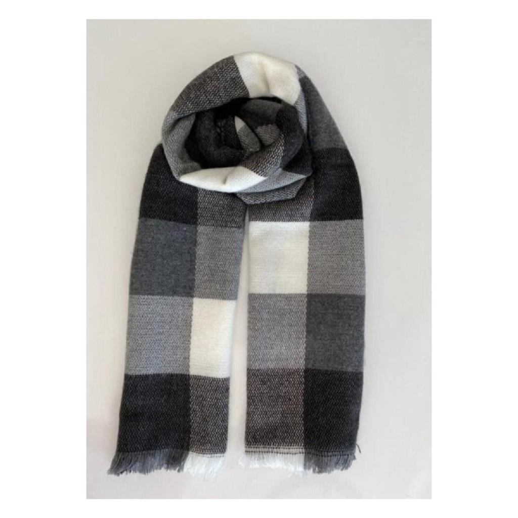 Мягкий фактурный шарф в черно-белую клетку