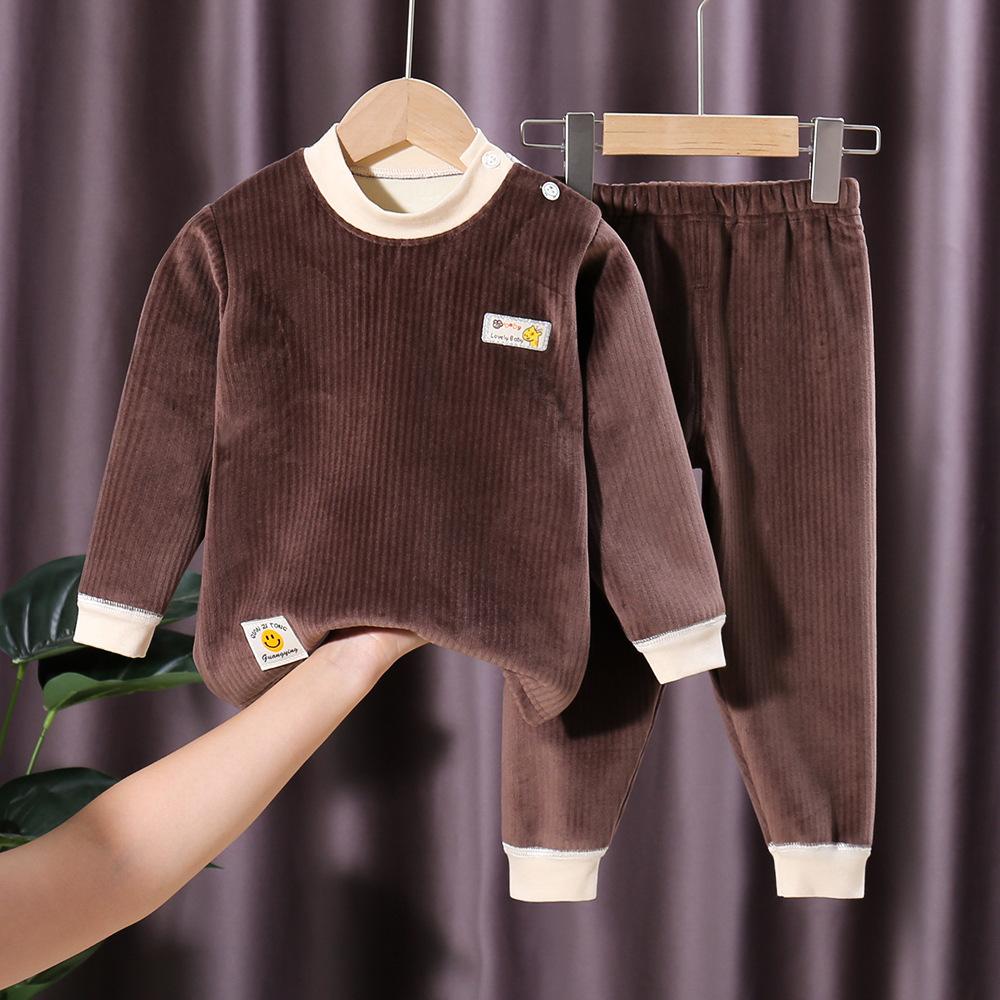 Детский утепленный флисовый комплект термобелья, осенние и зимние пижамы для мальчиков и девочек