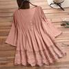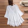 Женская модная повседневная свободная плиссированная кружевная блузка с полым v-образным вырезом и топом