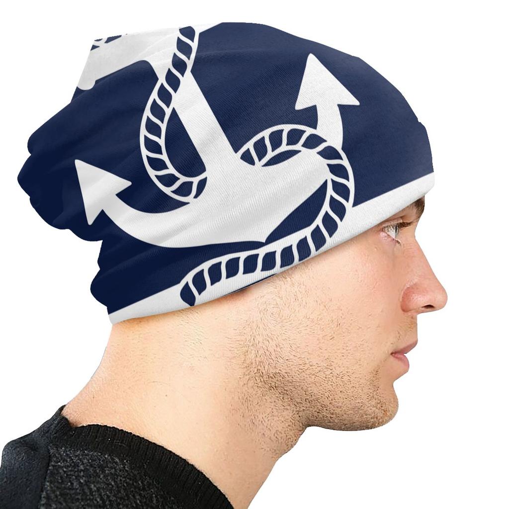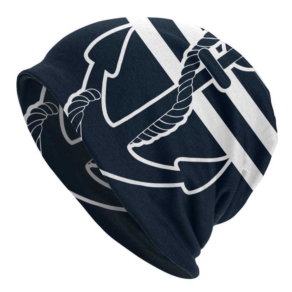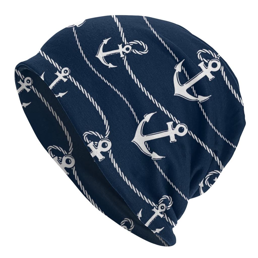 Морские темно-синие шапки с черепами, синие полосы, белый якорь, крутые женские уличные кепки унисекс, теплые вязаные шапки двойного назначения