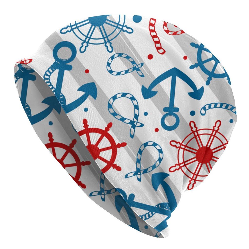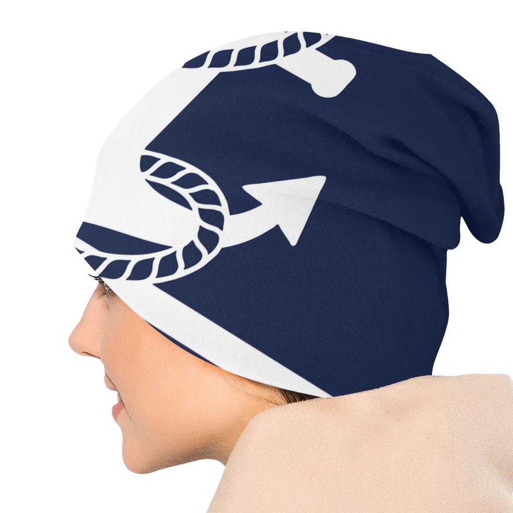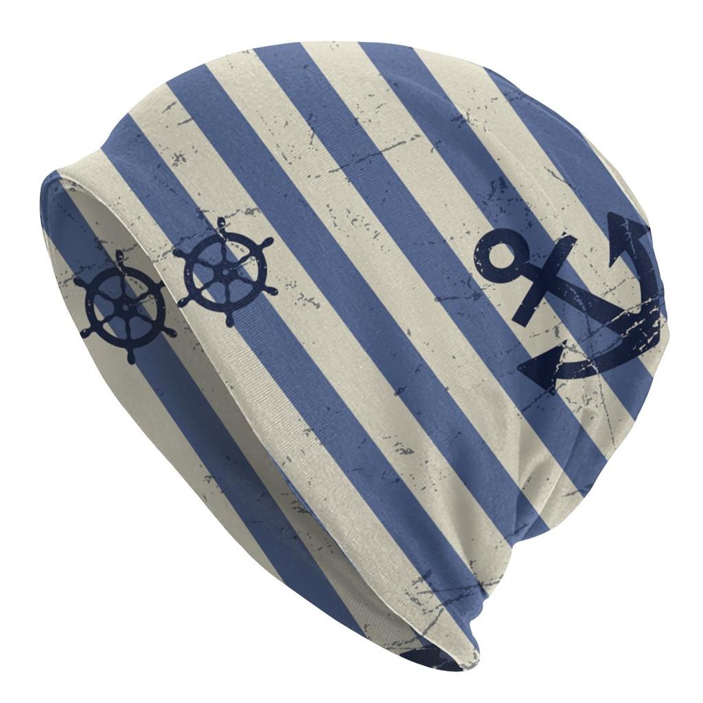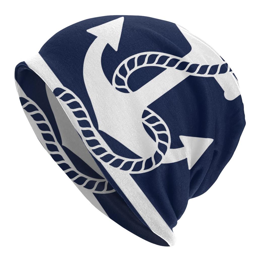 Морские темно-синие шапки с черепами, синие полосы, белый якорь, крутые женские уличные кепки унисекс, теплые вязаные шапки двойного назначения