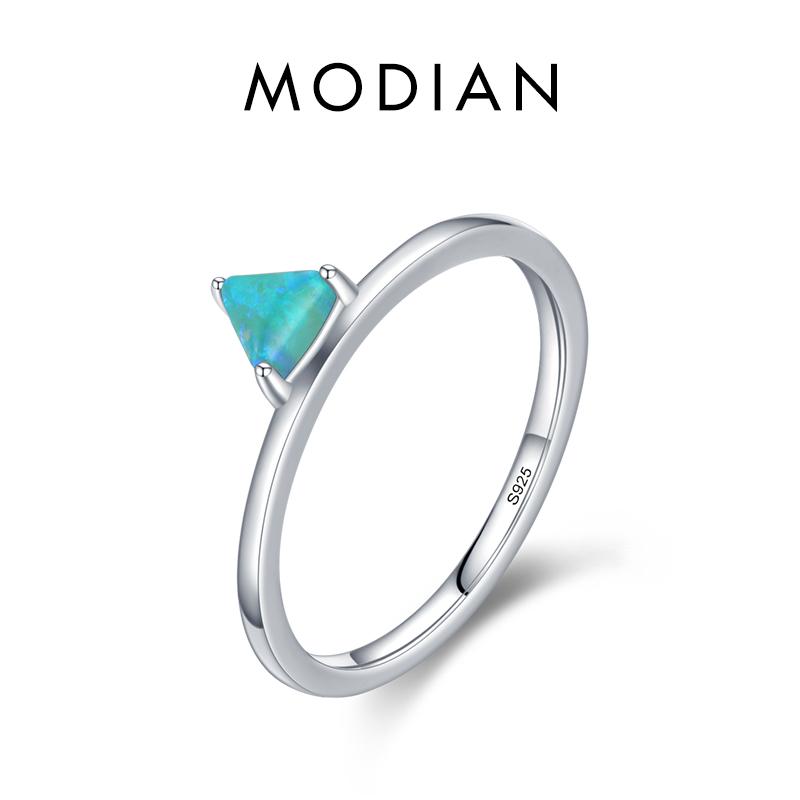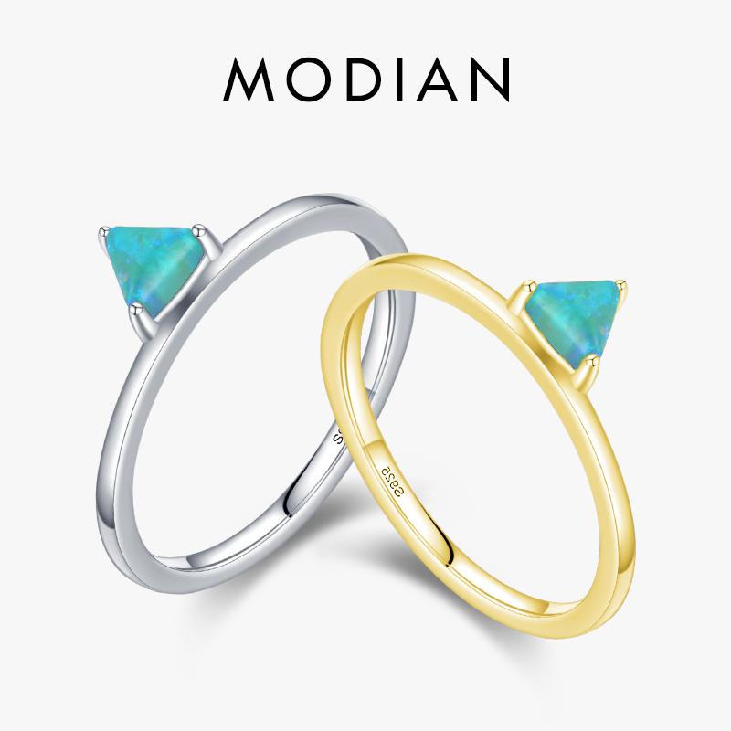 MODIAN Роскошные кольца из стерлингового серебра 925 пробы с геометрическим треугольником и натуральными опалами на палец для женщин, модные украшения для вечеринок