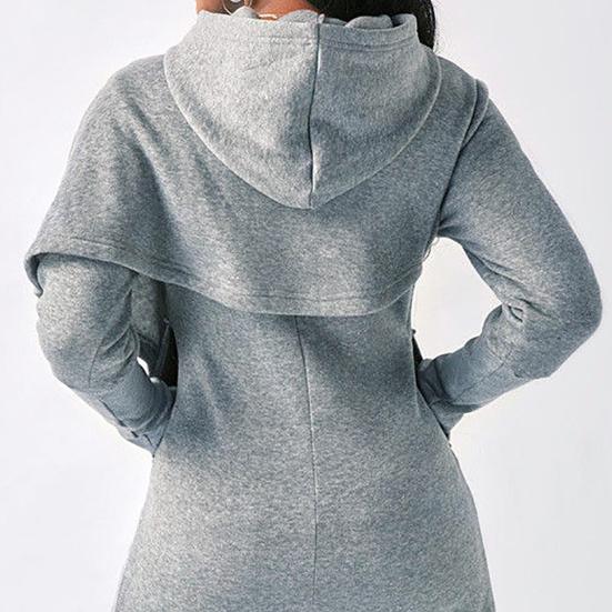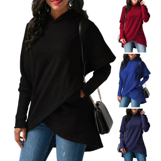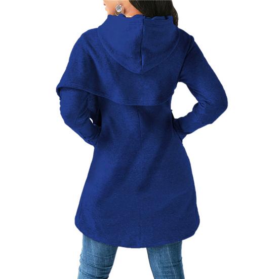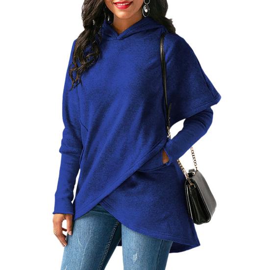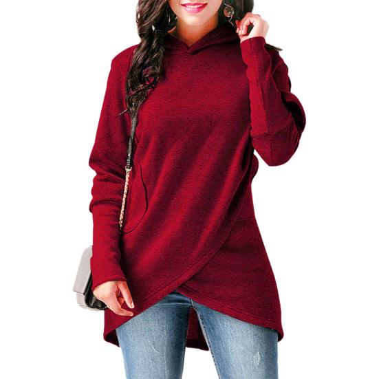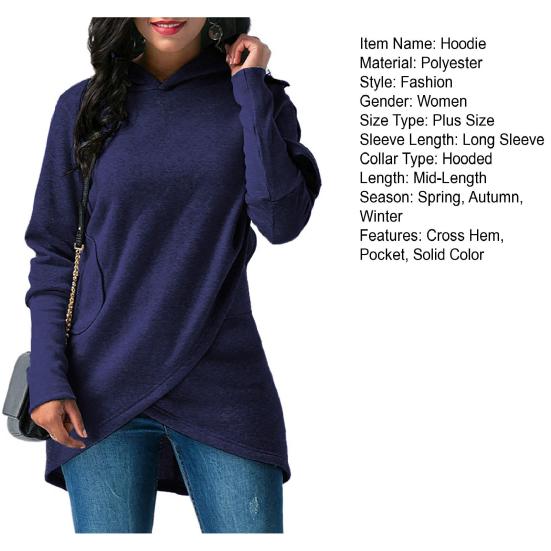 Ваша голова будет чувствовать себя тепло и уютно в этой толстовке с капюшоном. Женская толстовка с поперечным подолом средней длины может лучше показать ваше простое и модное очарование.