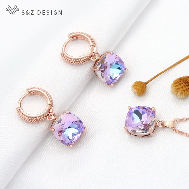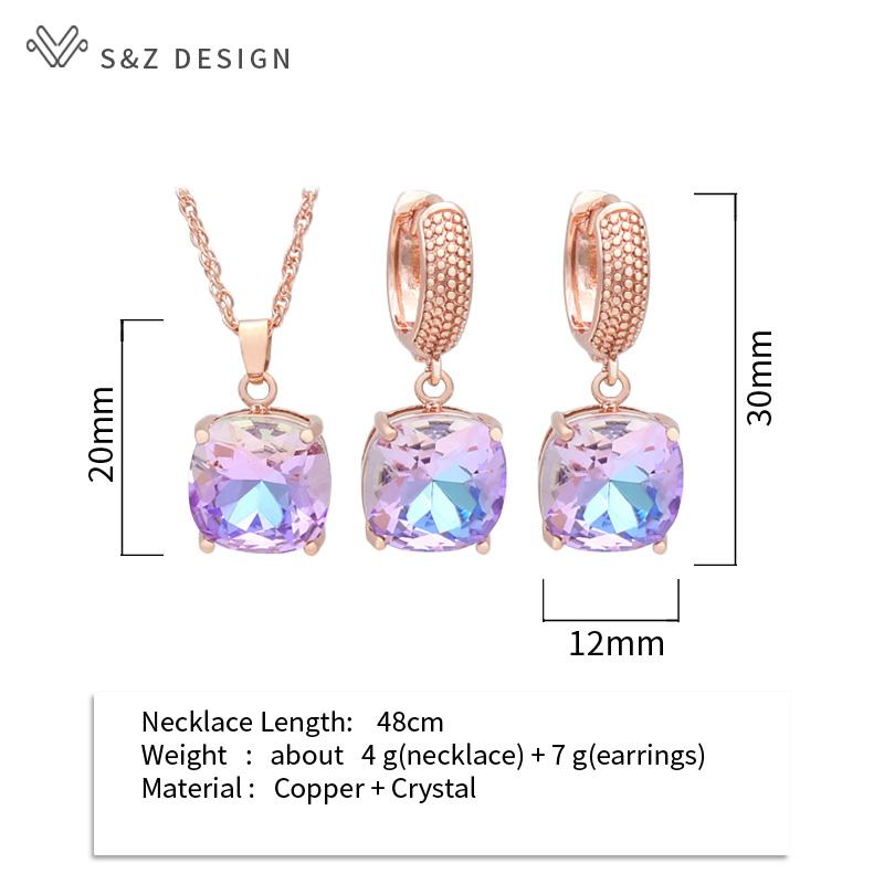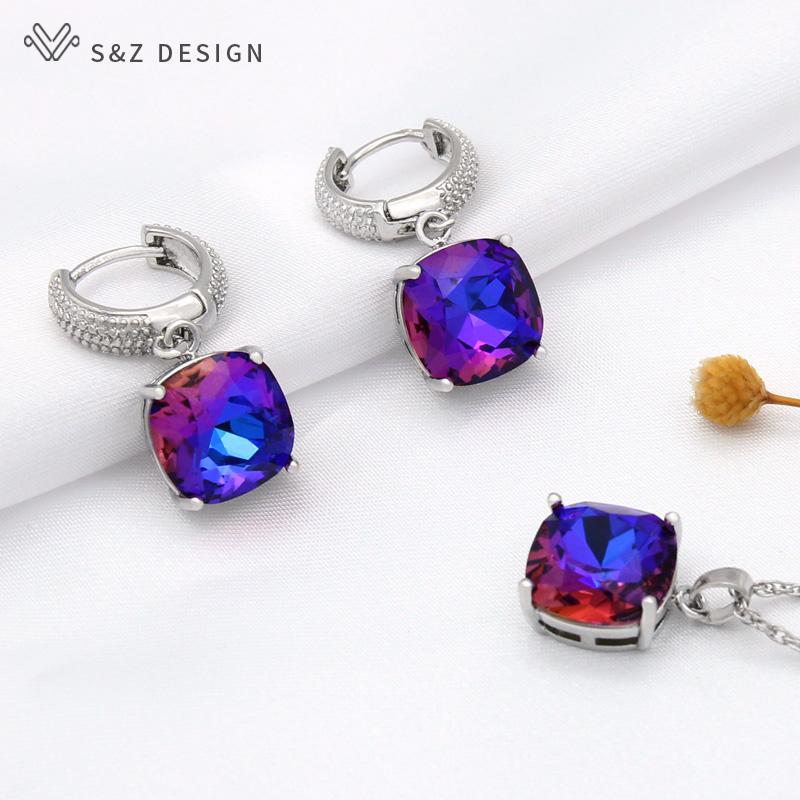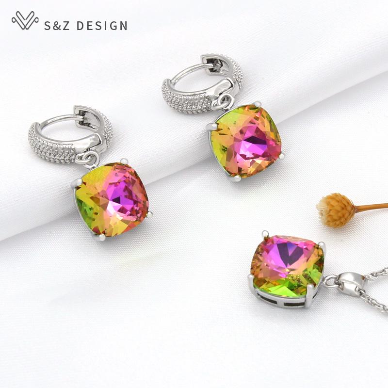 Модные красочные квадратные серьги-капли с кристаллами, комплекты ювелирных изделий для женщин, свадебный кулон, ожерелье, подарок