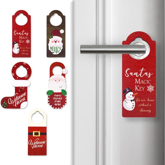 Рождественское украшение для дверной ручки, изготовленное из высококачественной древесины, прочное и долговечное, его нелегко повредить, и его можно использовать в течение длительного времени до следующего Рождества.