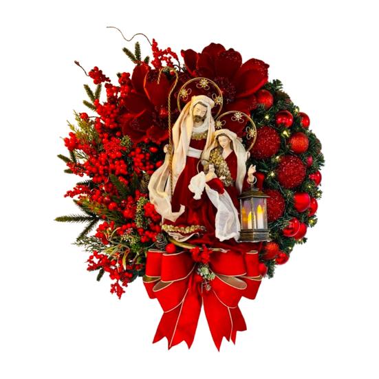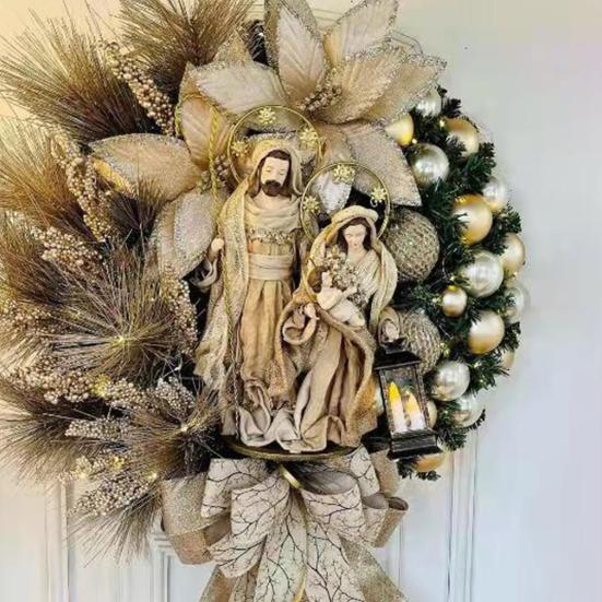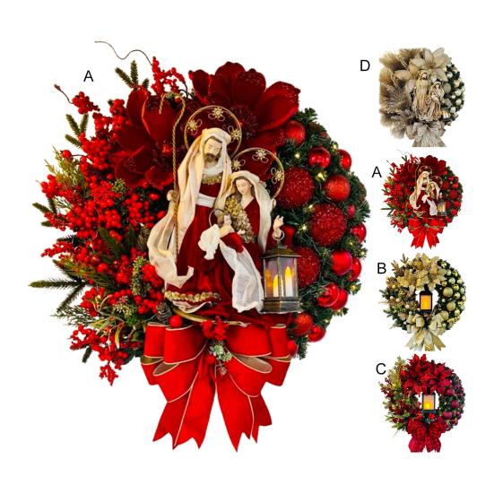 Рождественский венок с Иисусом, винтажный привлекательный декоративный рождественский венок, снежок, красная ягодная гирлянда из сосновой шишки для сада