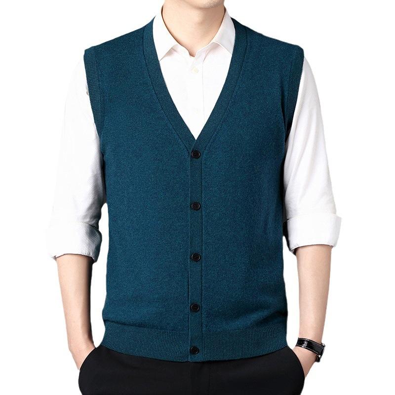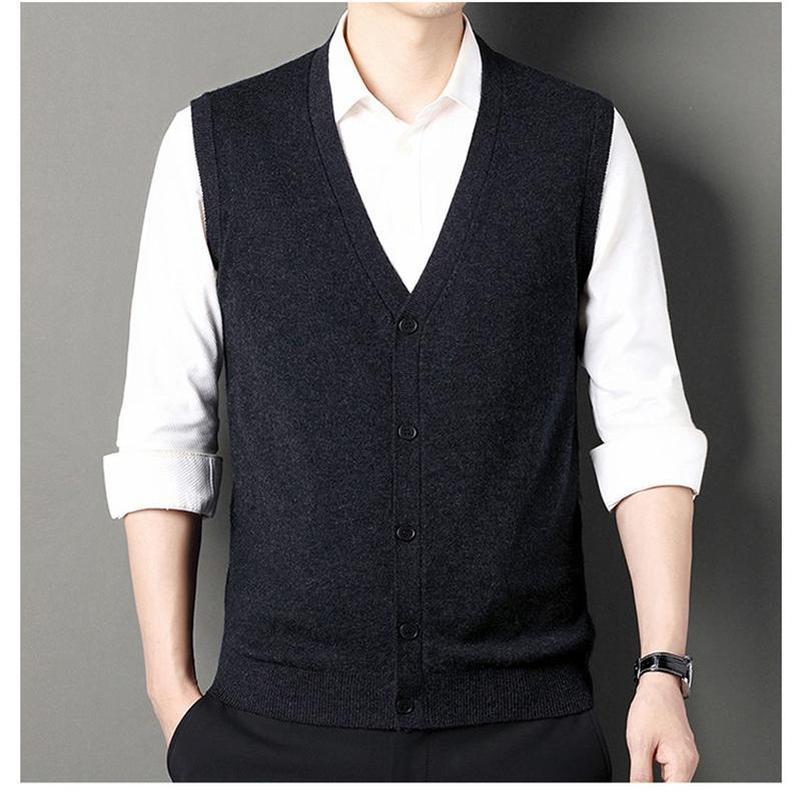 Мужской шерстяной жилет, осенне-зимний модный повседневный однотонный мужской кардиган с v-образным вырезом, жилет без рукавов, свитер для мужчин