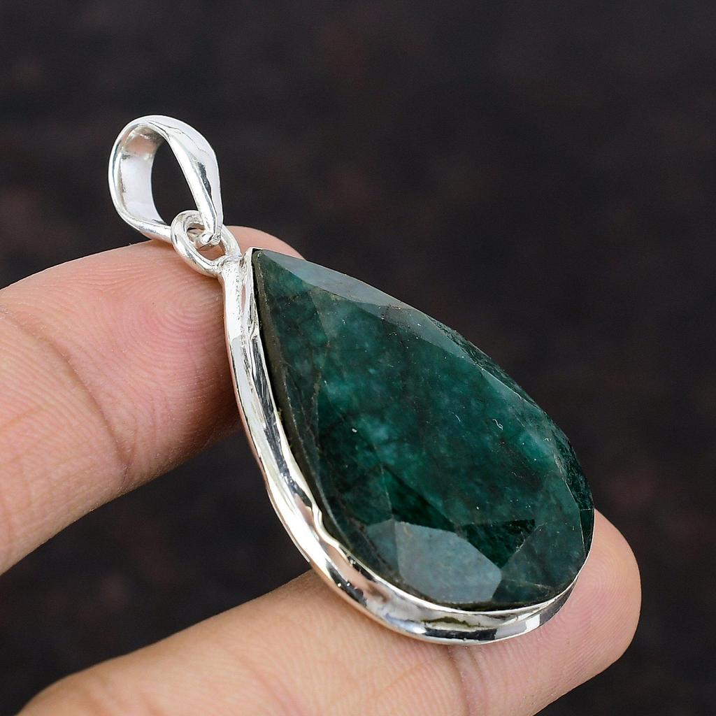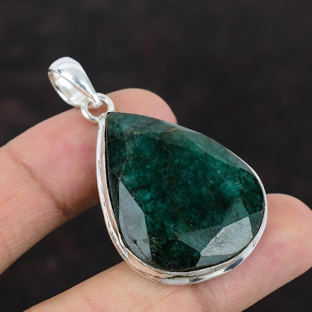 Ограненный замбийский изумрудный кулон из стерлингового серебра 925 пробы, приличные ювелирные изделия ручной работы, кулон из настоящего драгоценного камня, кулон с целебным камнем, подарок для нее