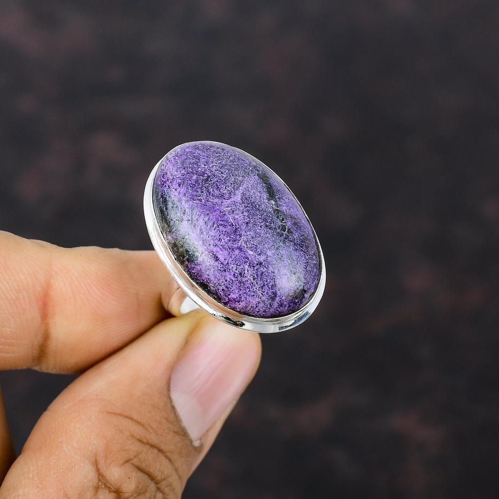Кольцо из стерлингового серебра 925 пробы Регулируемое кольцо Ювелирные изделия из драгоценного камня с пурпуритом Кольцо ручной работы Подарок для ее кольца с камнем по рождению Стильное кольцо