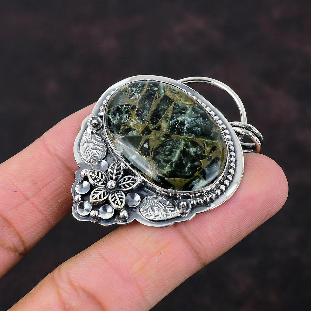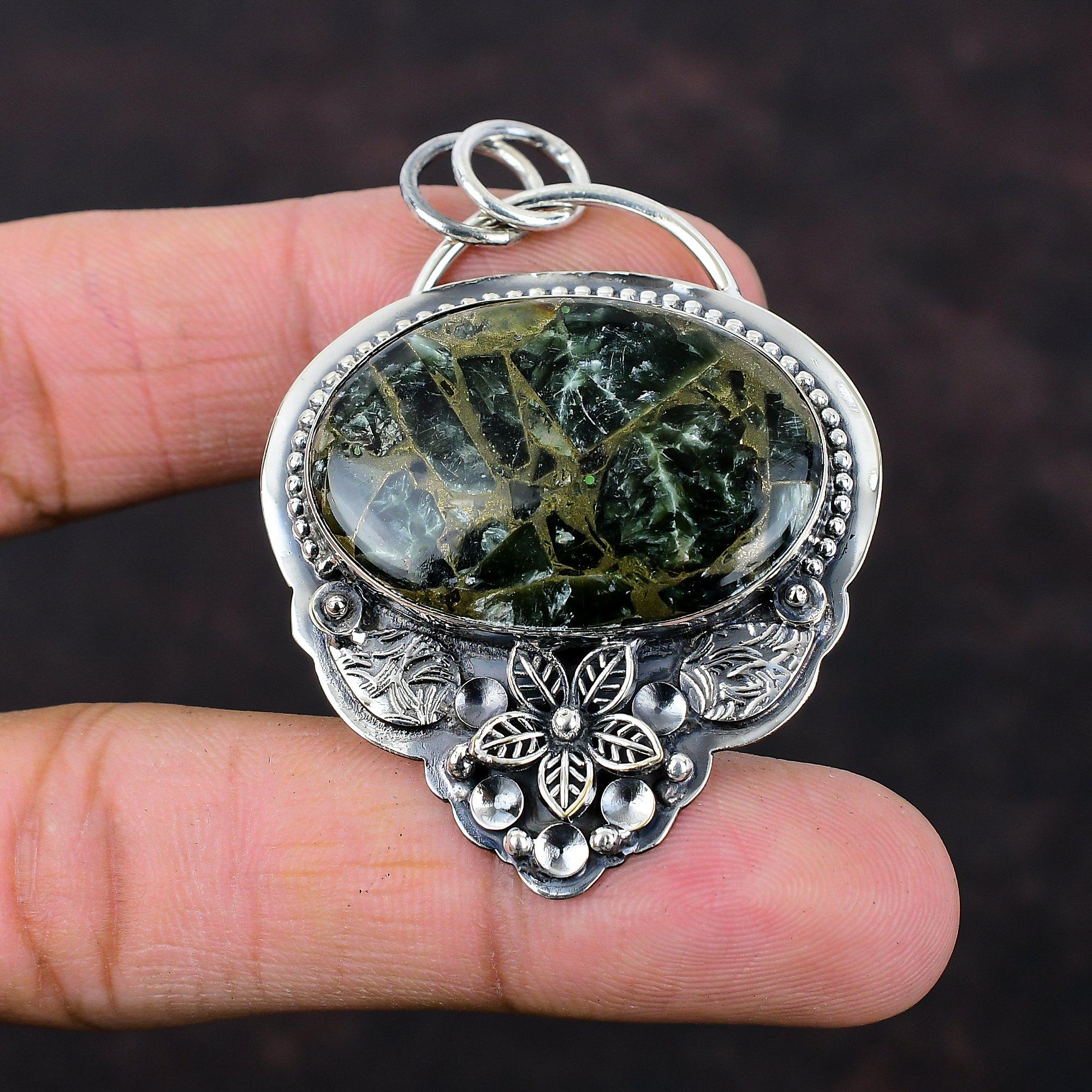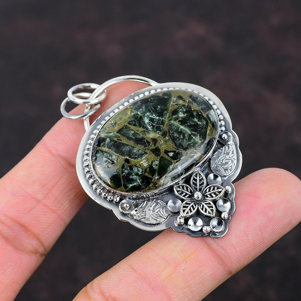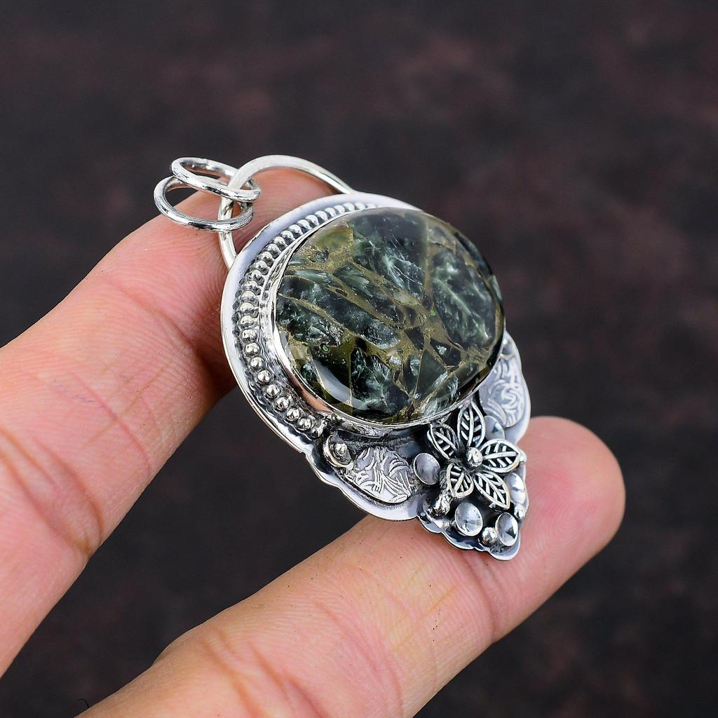 Медь Серафинит Подвеска Стерлингового Серебра 925 Подвеска Удивительный Драгоценный Камень Ювелирные Изделия Ручной Работы Цветочная Подвеска Целебный Камень Ювелирные Изделия Подарок Для Женщин
