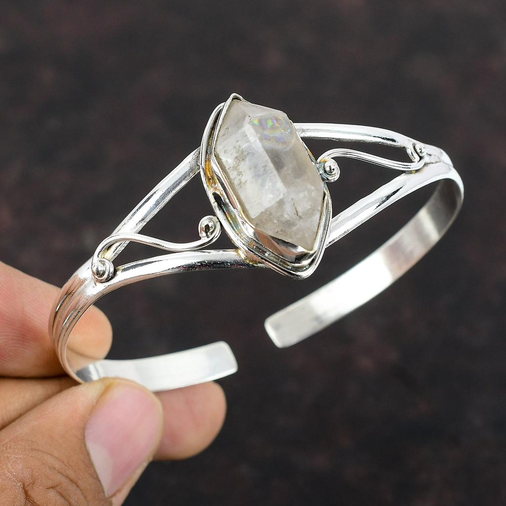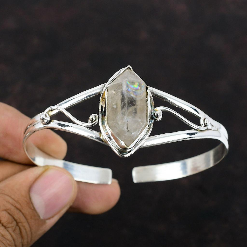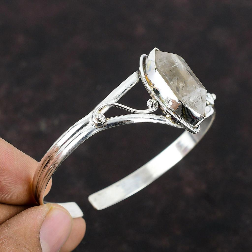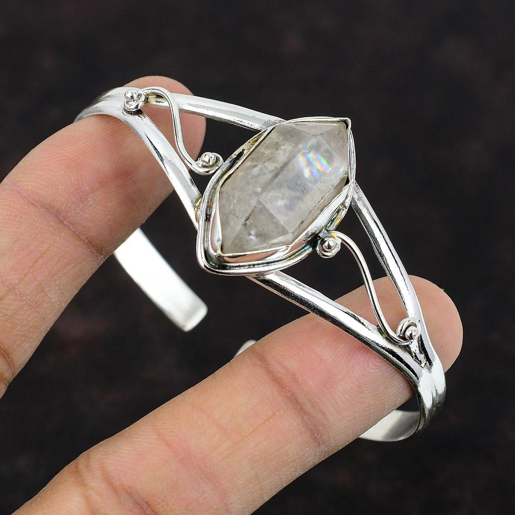 Herkimer Бриллиантовый браслет Браслет-манжета ручной работы Стерлинговое серебро 925 пробы Браслет-манжета Драгоценный камень Регулируемый браслет Подарок для нее Ювелирные изделия в стиле бохо