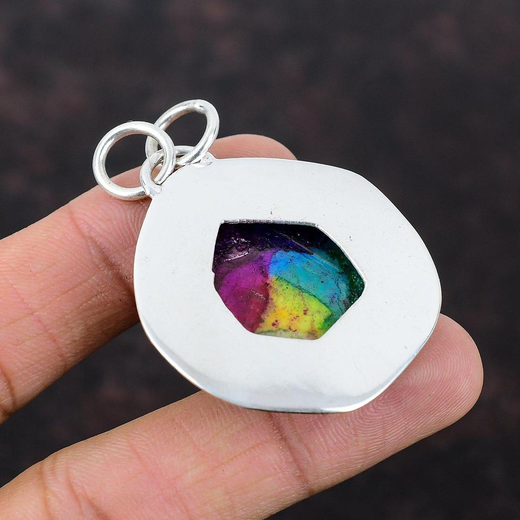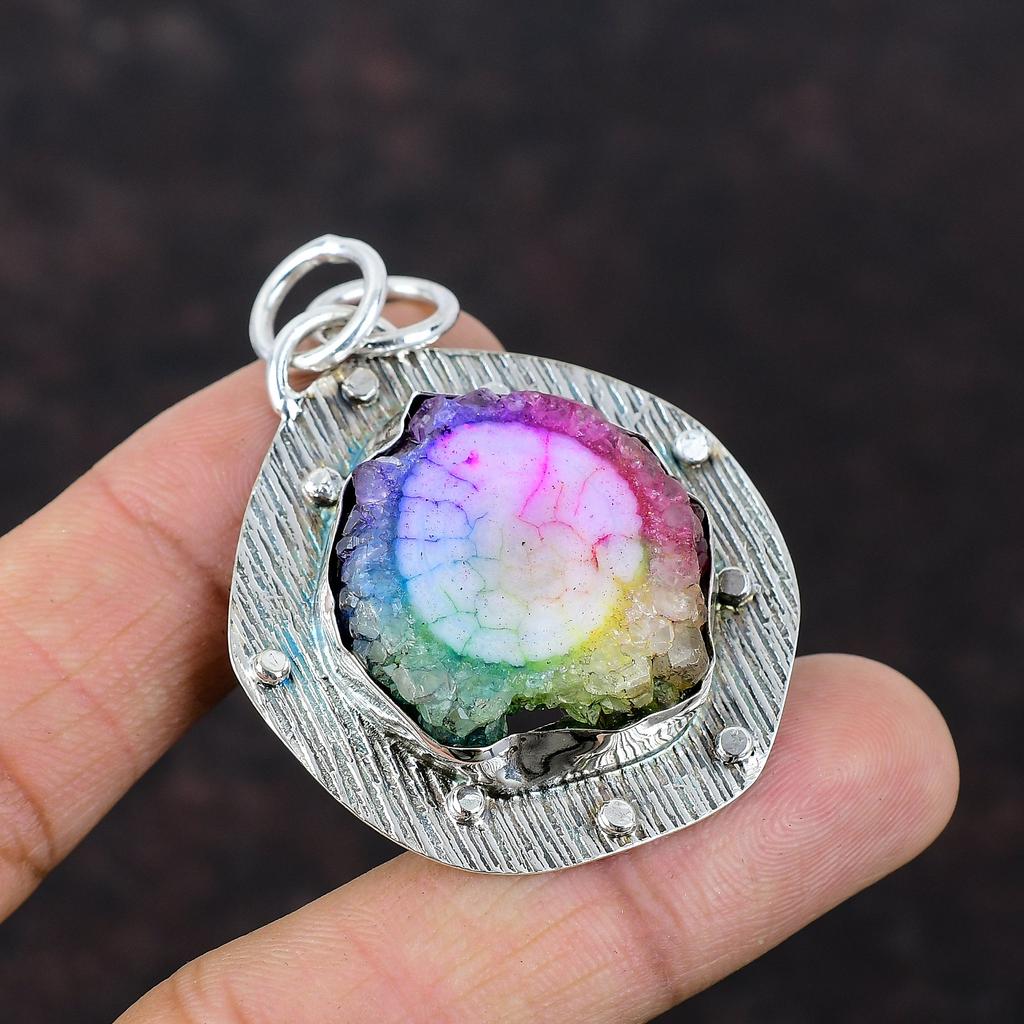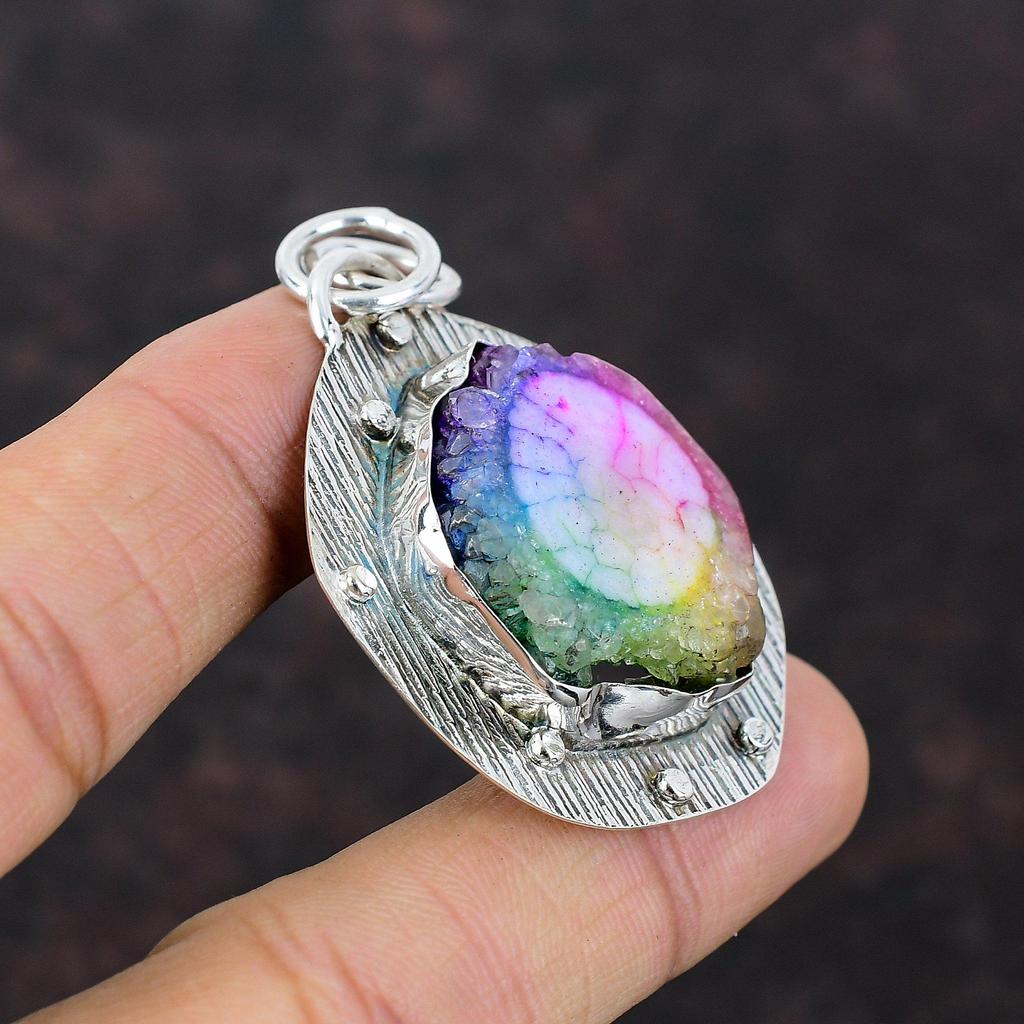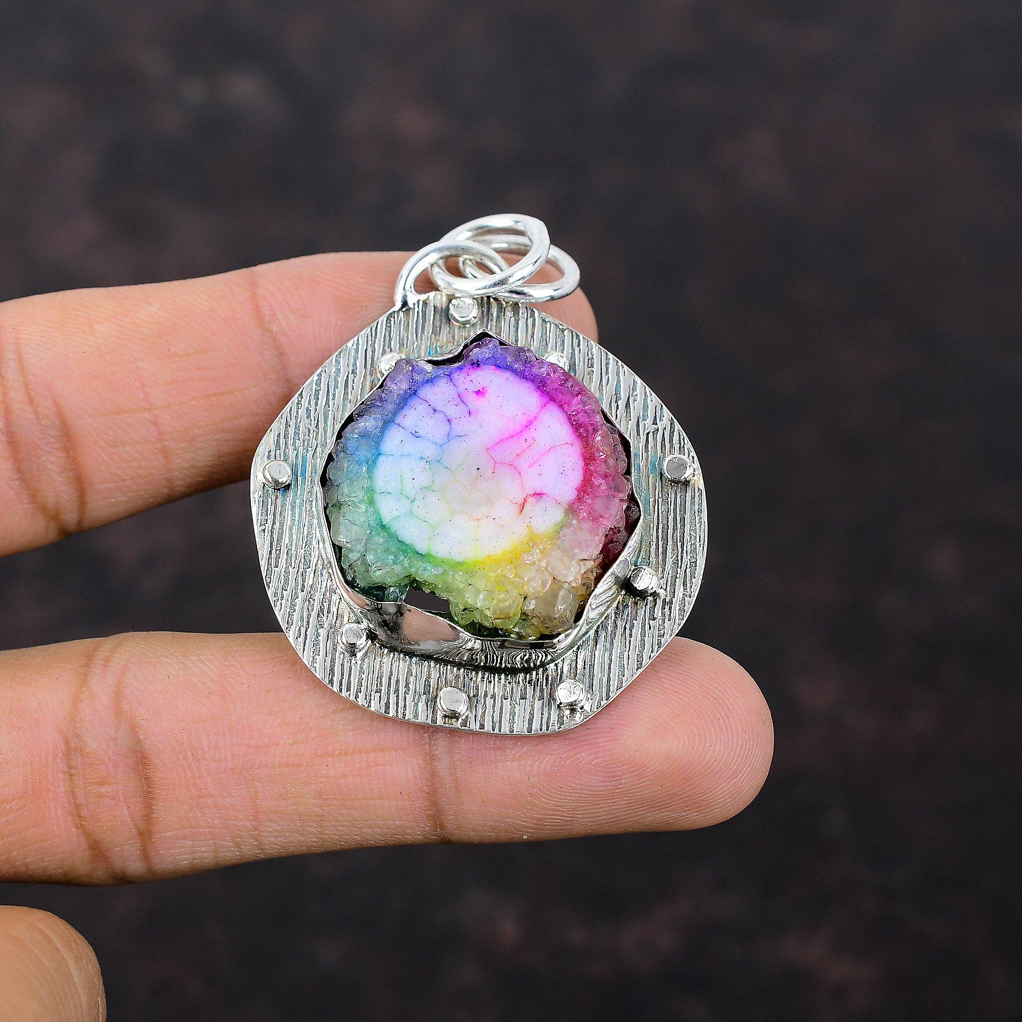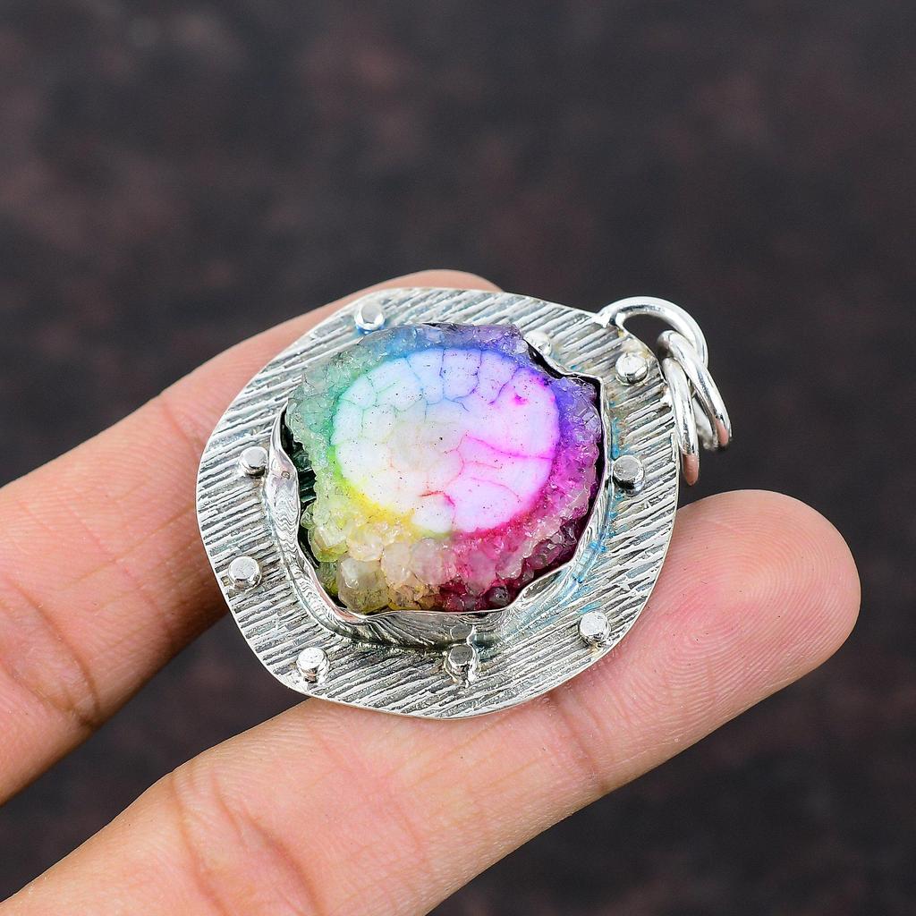 Радужный солнечный кварцевый кулон-друзи, этнические украшения ручной работы, подвеска из стерлингового серебра 925 пробы, настоящий драгоценный камень, ювелирный подарок для жены, новый кулон