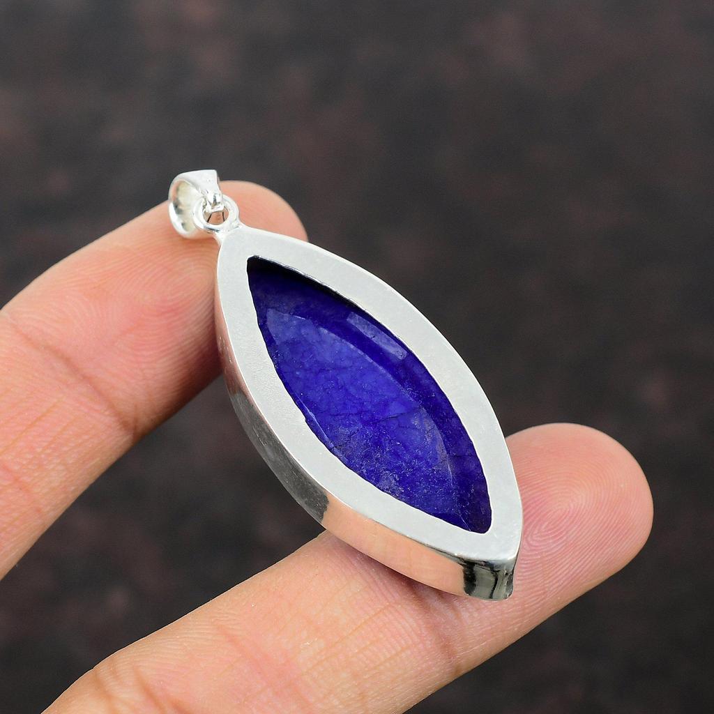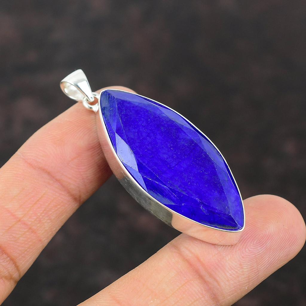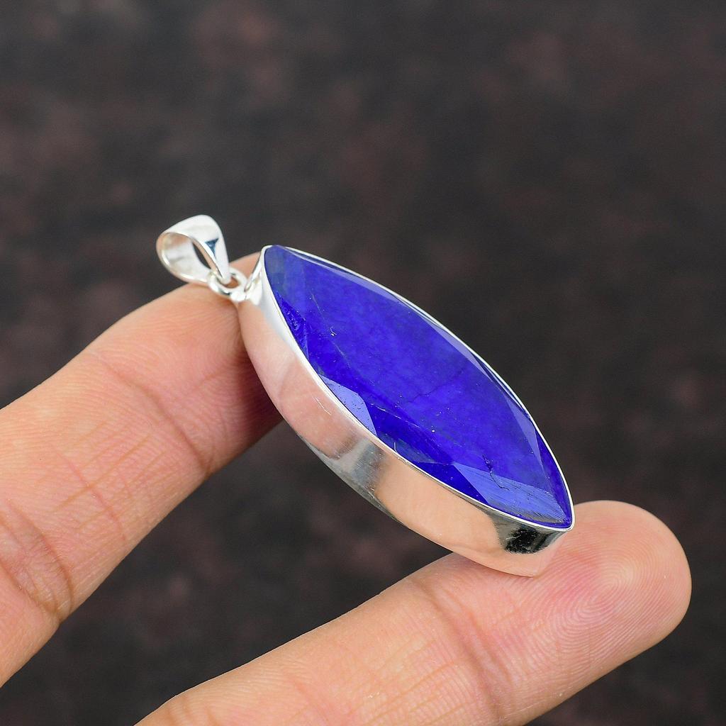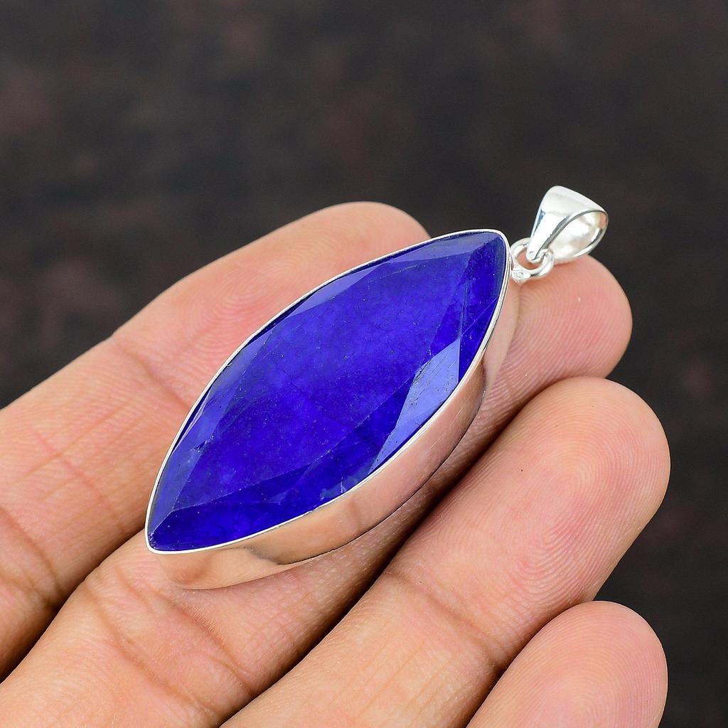 Ограненный Синий Сапфир Подвеска Ювелирные Изделия Ручной Работы Стильный Подвеска Стерлингового Серебра 925 Подвеска Натуральный Драгоценный Камень Подвеска Серебряные Ювелирные Изделия Для Подарка