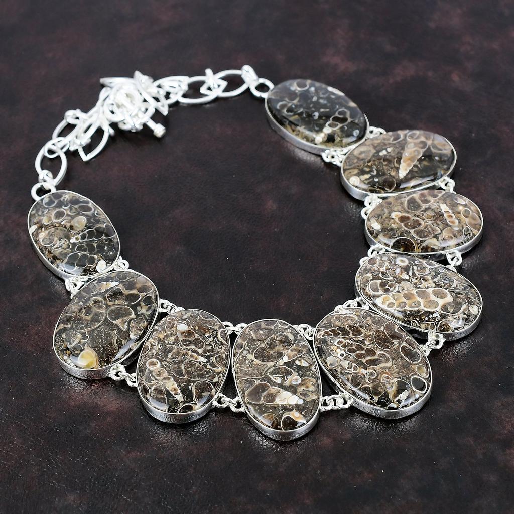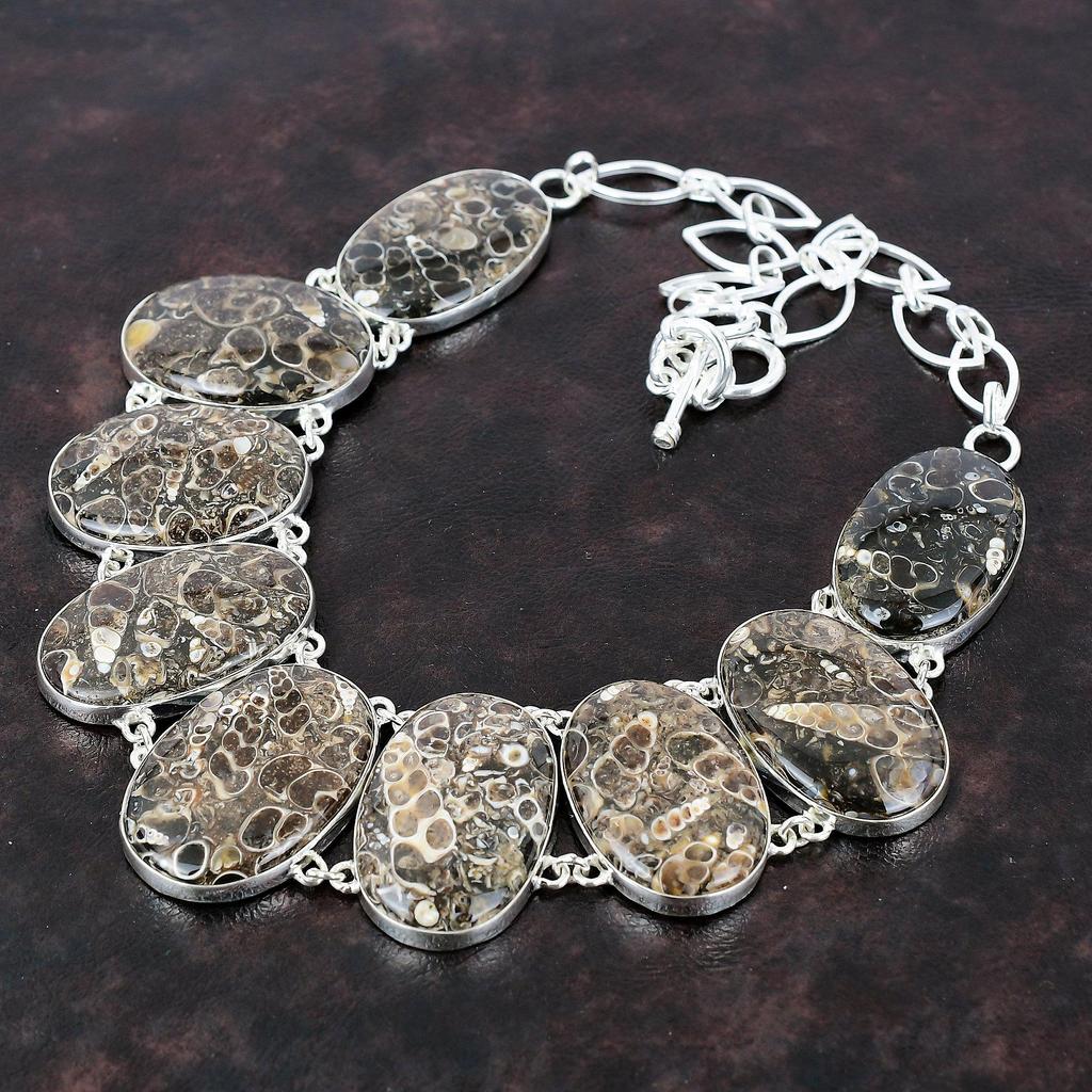 Ожерелье из агата Turritella, ожерелье из стерлингового серебра 925 пробы, дизайнерские ювелирные изделия из драгоценных камней, регулируемое ожерелье-цепочка, ожерелье ручной работы, подарок для невесты