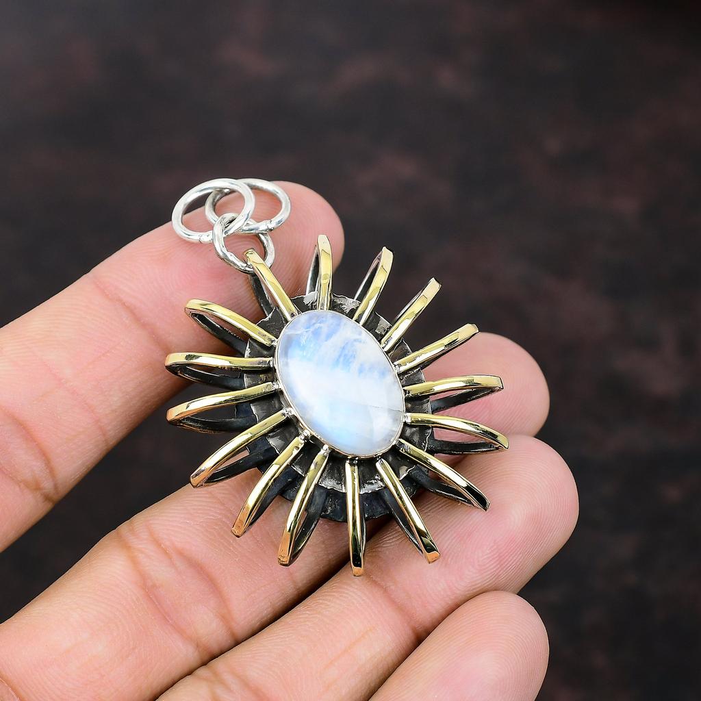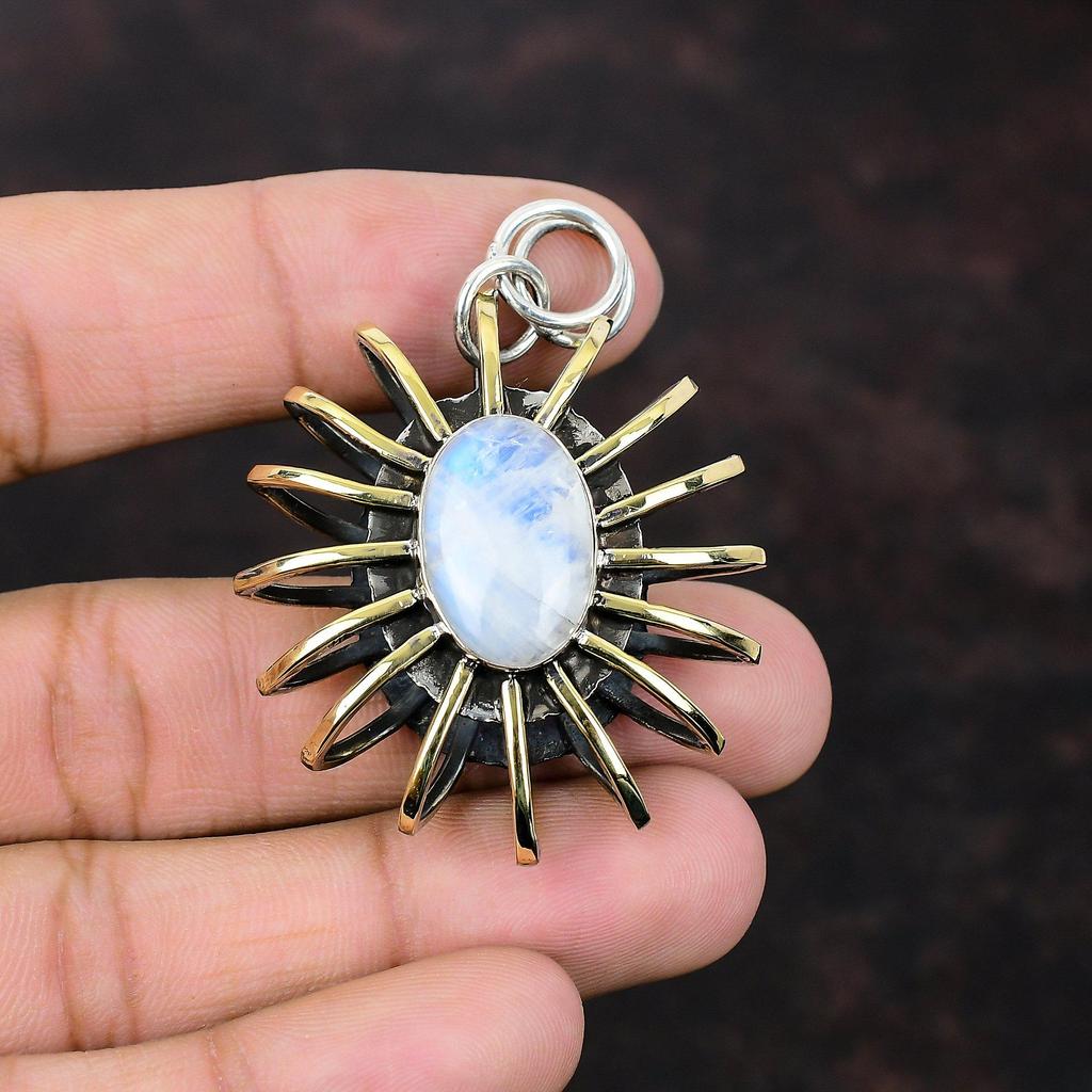 Подвеска из радужного лунного камня, ювелирные изделия ручной работы, подвеска из стерлингового серебра 925 пробы, позолоченная 18-каратная подвеска в виде клетки, новинка, ювелирное изделие из драгоценного камня, подарок для жены