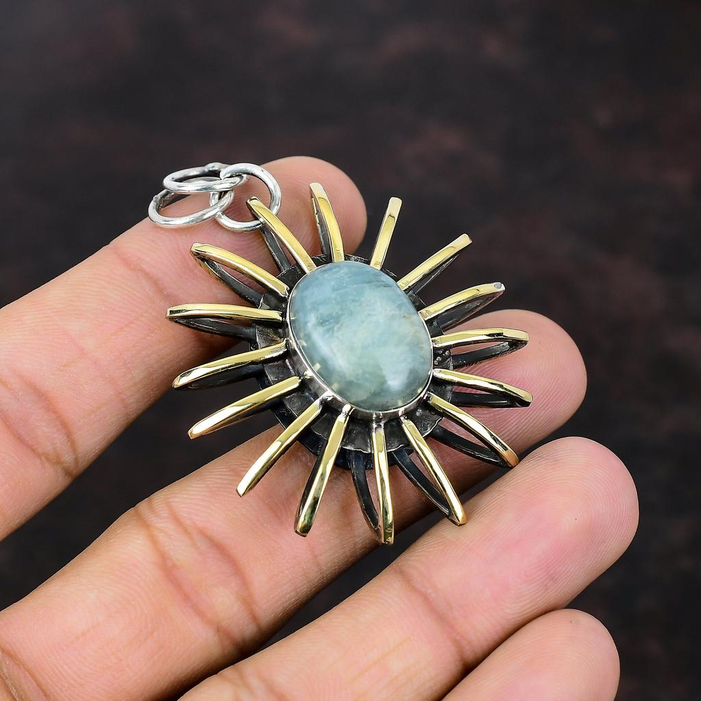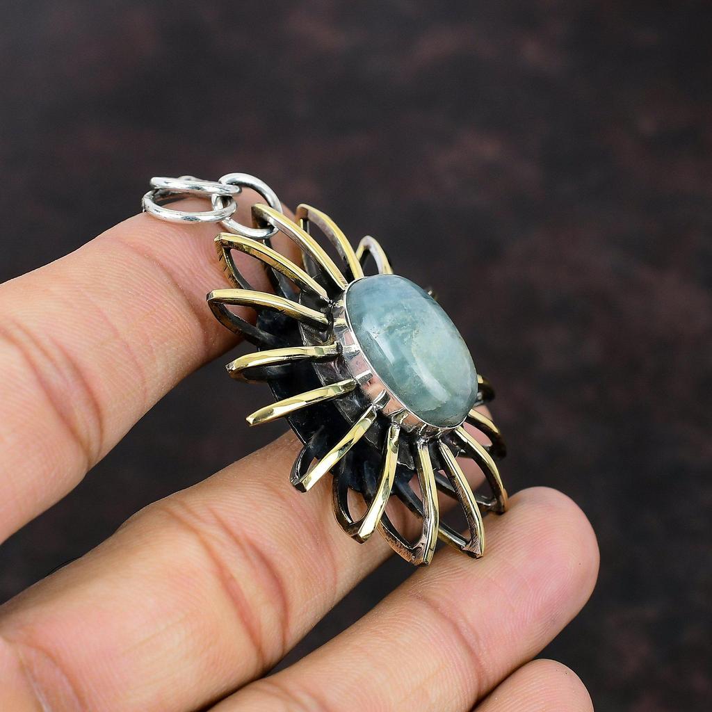 Аквамарин Подвеска Стерлингового Серебра 925 Подвеска Драгоценный Камень Ювелирные Изделия Ручной Работы Позолоченный Подвеска 18 К Подвеска Клетка Подарок Для Женщин Антикварные Ювелирные Изделия