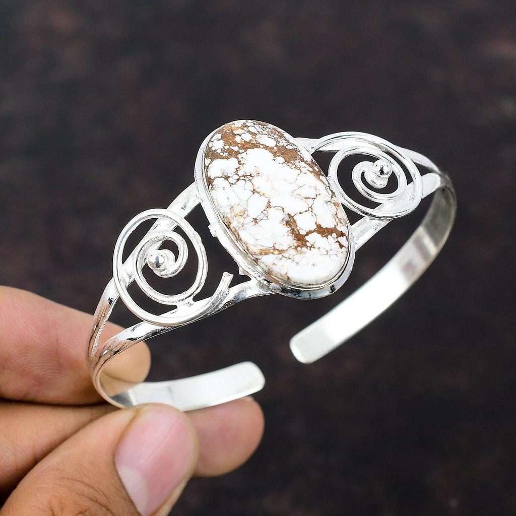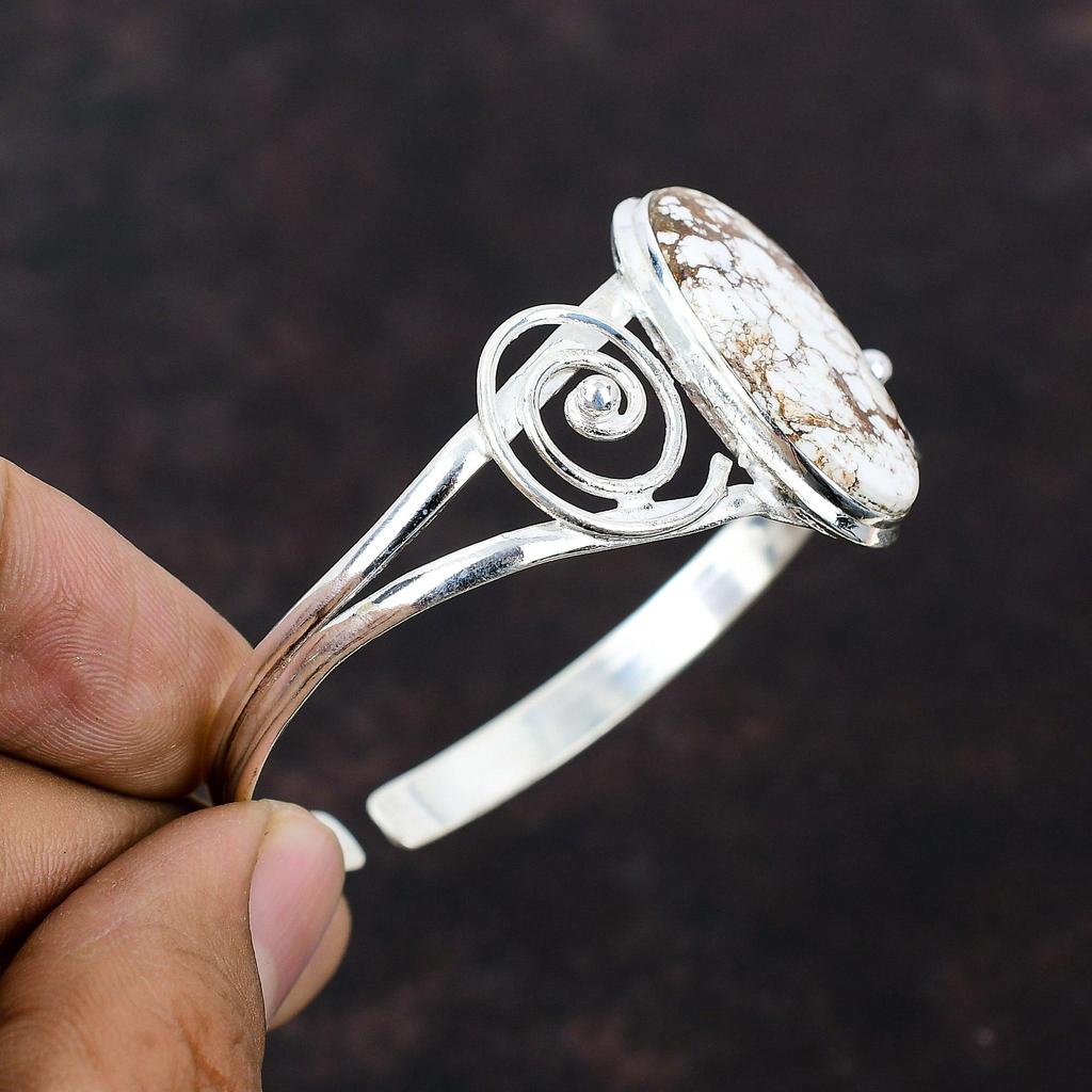 Браслет-манжета «Дикая лошадь» с магнезитом, ювелирные изделия ручной работы, стерлинговое серебро 925 пробы, браслет, ювелирные изделия из драгоценных камней, регулируемый браслет, новые ювелирные изделия для подарка