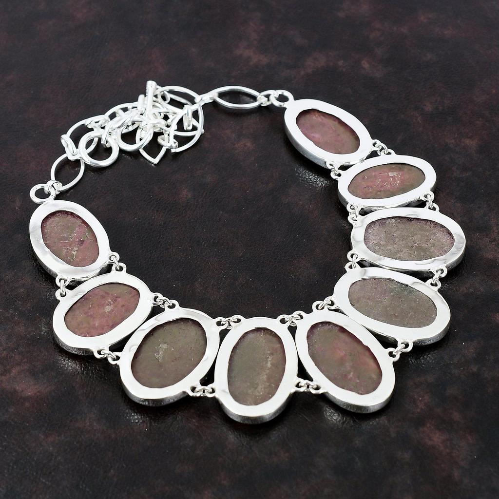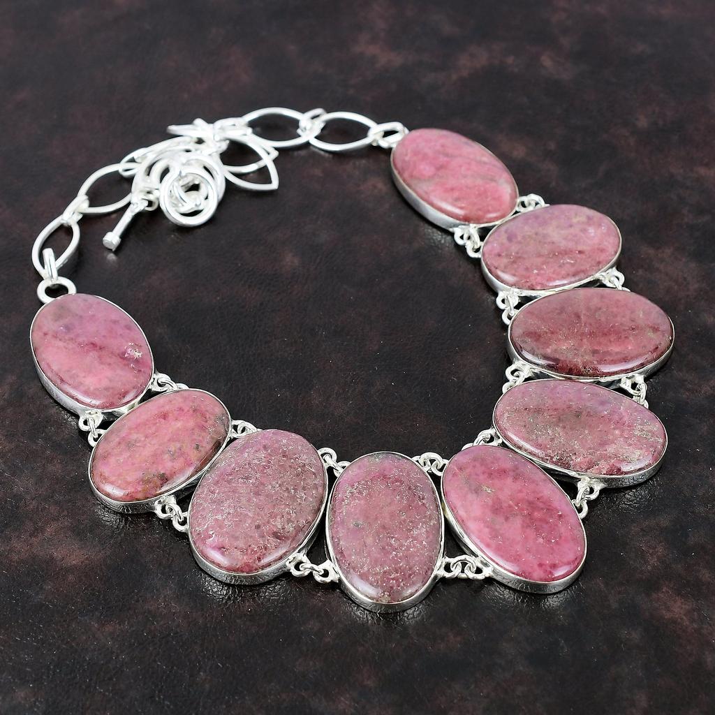 Ожерелье из родонита, ожерелье из стерлингового серебра 925 пробы, ювелирные изделия из настоящего драгоценного камня, регулируемая цепочка ручной работы, модное ювелирное изделие, подарок для мамы