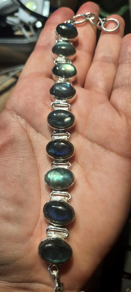 Неожиданно (для индийских серебряных изделий) очень качественно. В браслете реально 925 проба. Все камни с иризацией. Присутствует характерная для структуры лабрадора внутреннчя трещиноватость, сколов нет. Замочек-тогл аккуратный и выглядит надёжно, все кольца застежки паяные. Очень довольна. Большое спасибо.
