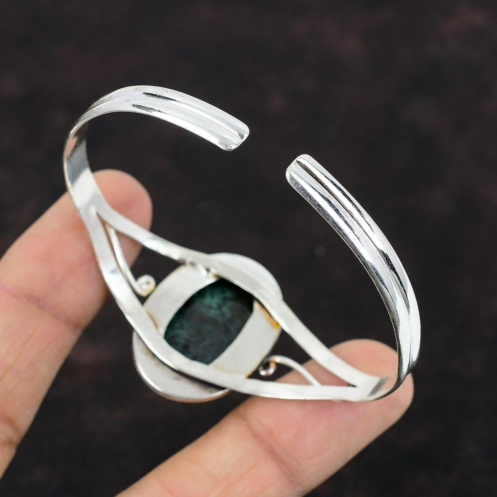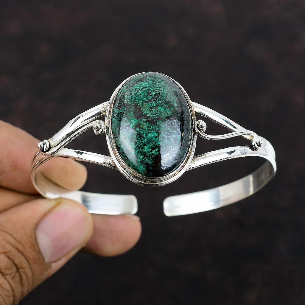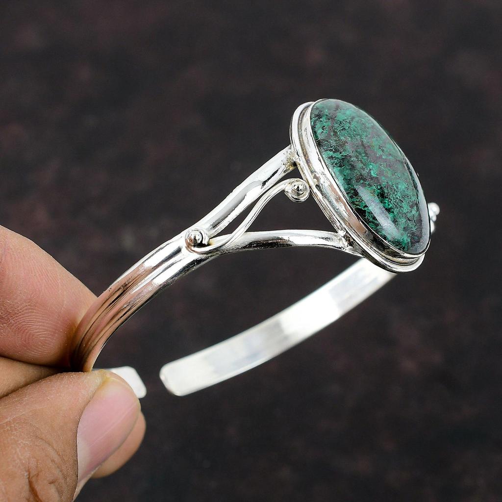 Браслет из хризоколлы, браслет-манжета ручной работы, браслет из стерлингового серебра 925 пробы, регулируемая манжета, изящный браслет, подарок для нее, ювелирные изделия из драгоценных камней из хризоколлы