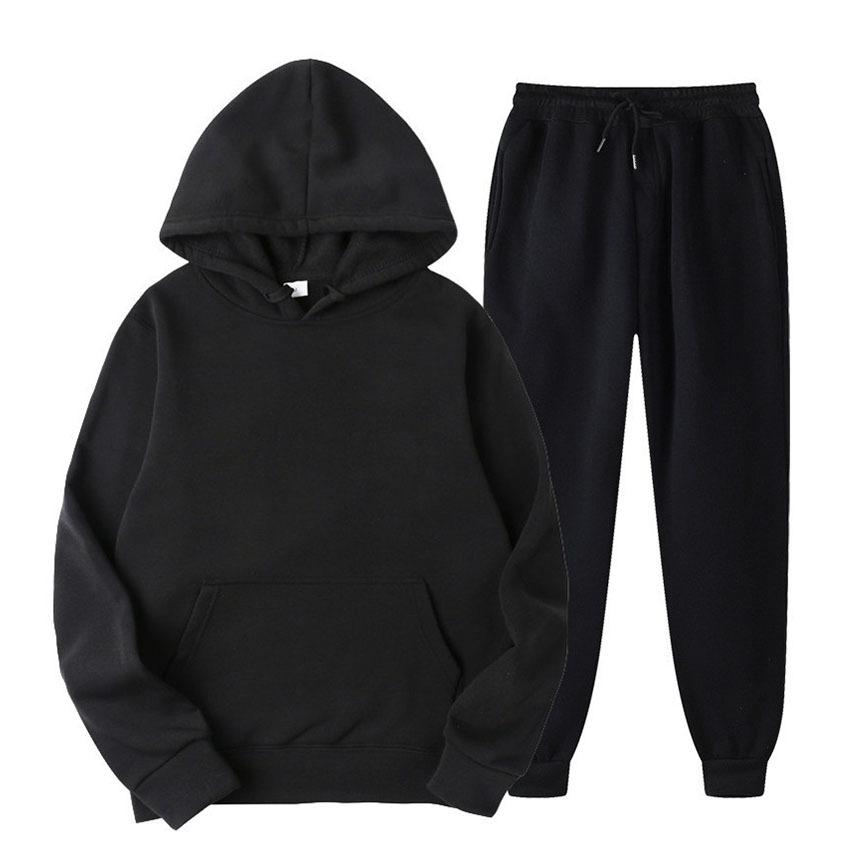 Мужские однотонные комплекты пуловеров с капюшоном, осень-зима, флисовая толстовка с капюшоном, костюм из двух предметов, мужские спортивные штаны больших размеров, спортивный костюм — купить товар онлайн с бесплатной доставкой по всему миру!