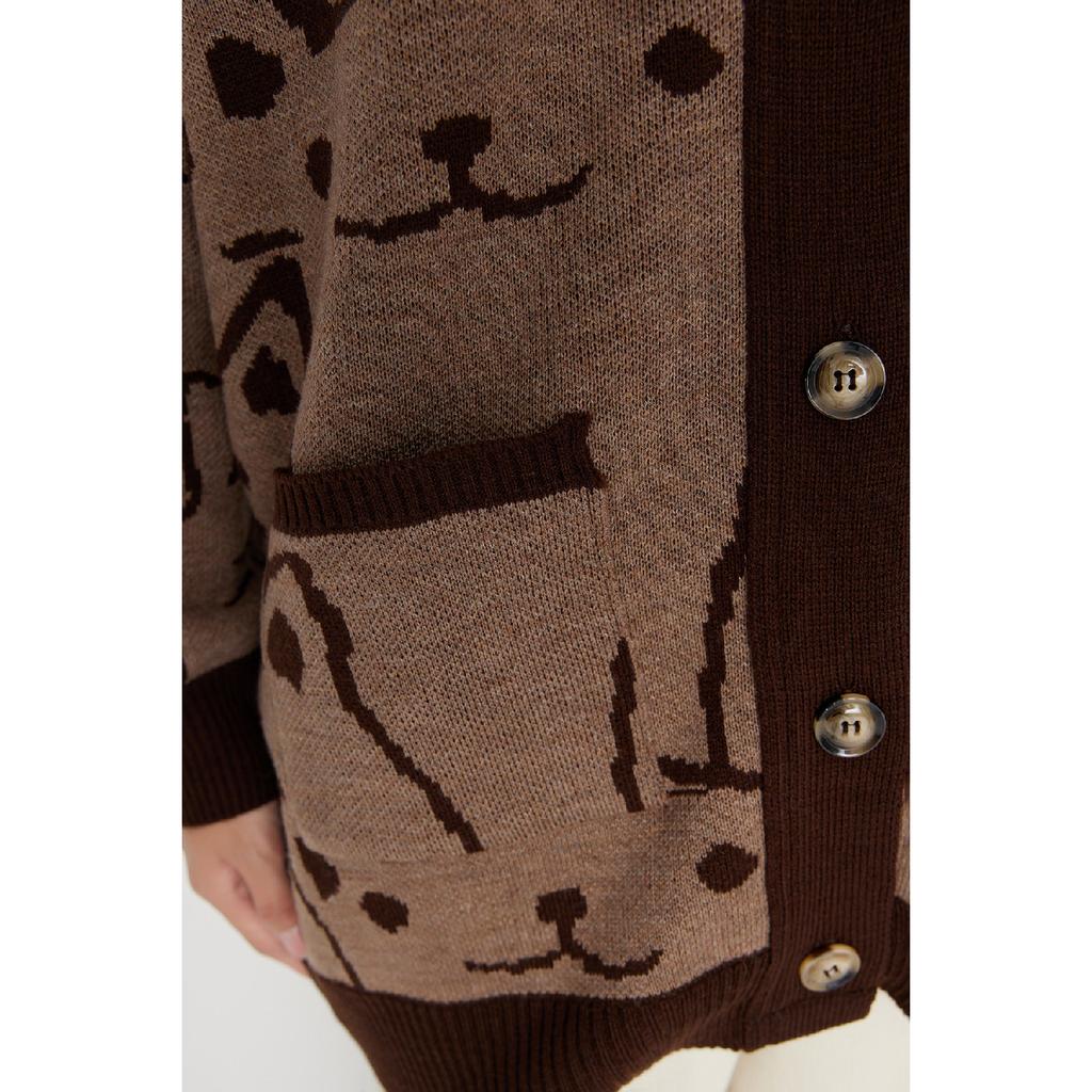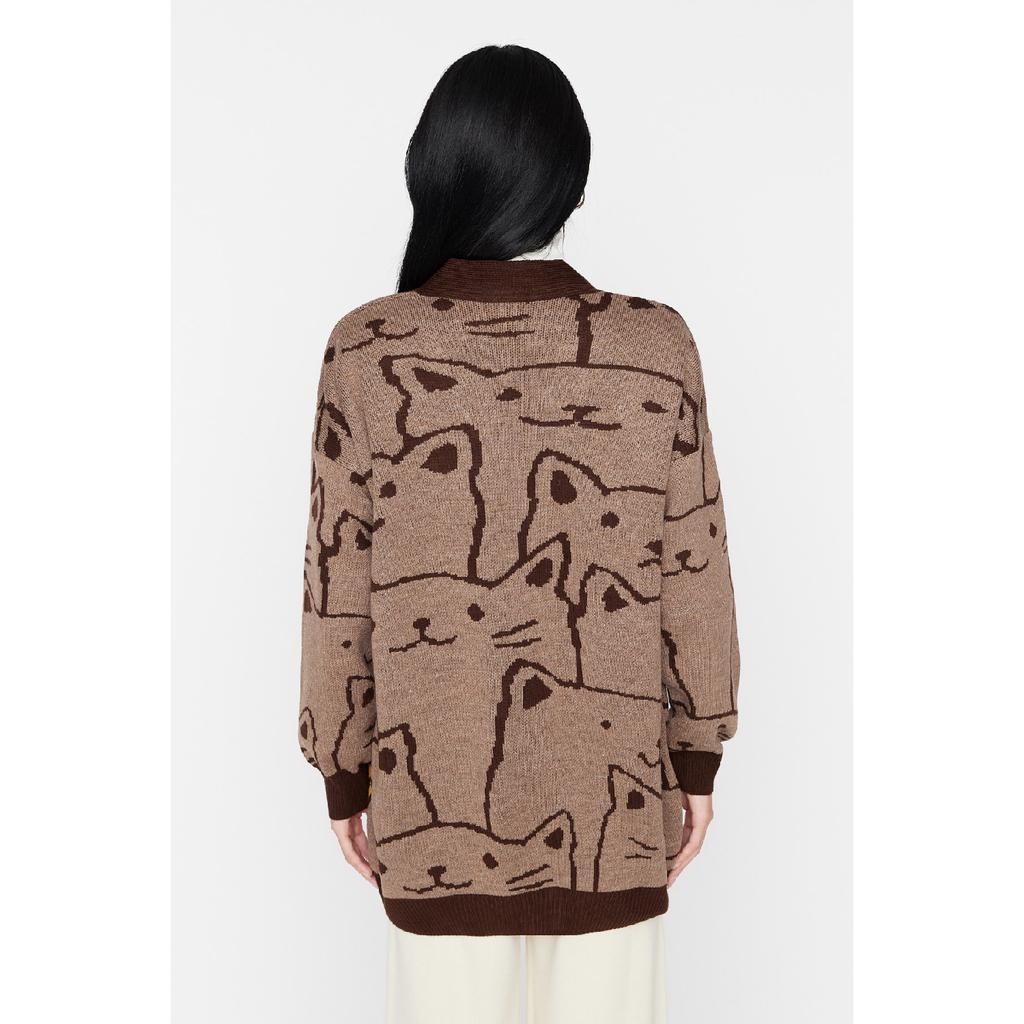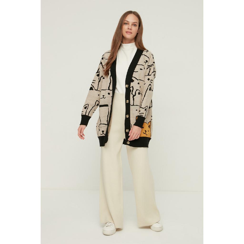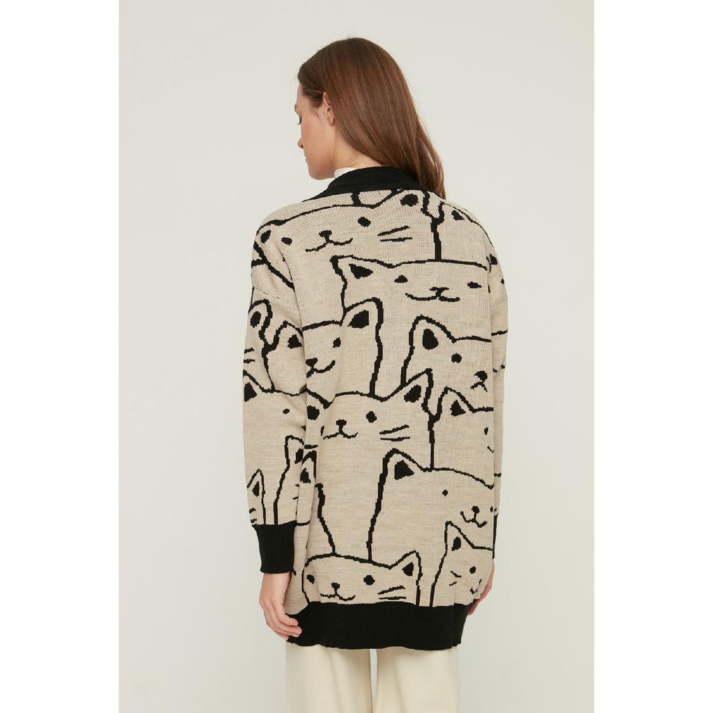 Бежевый трикотажный кардиган с рисунком животных Tctaw22th0135
