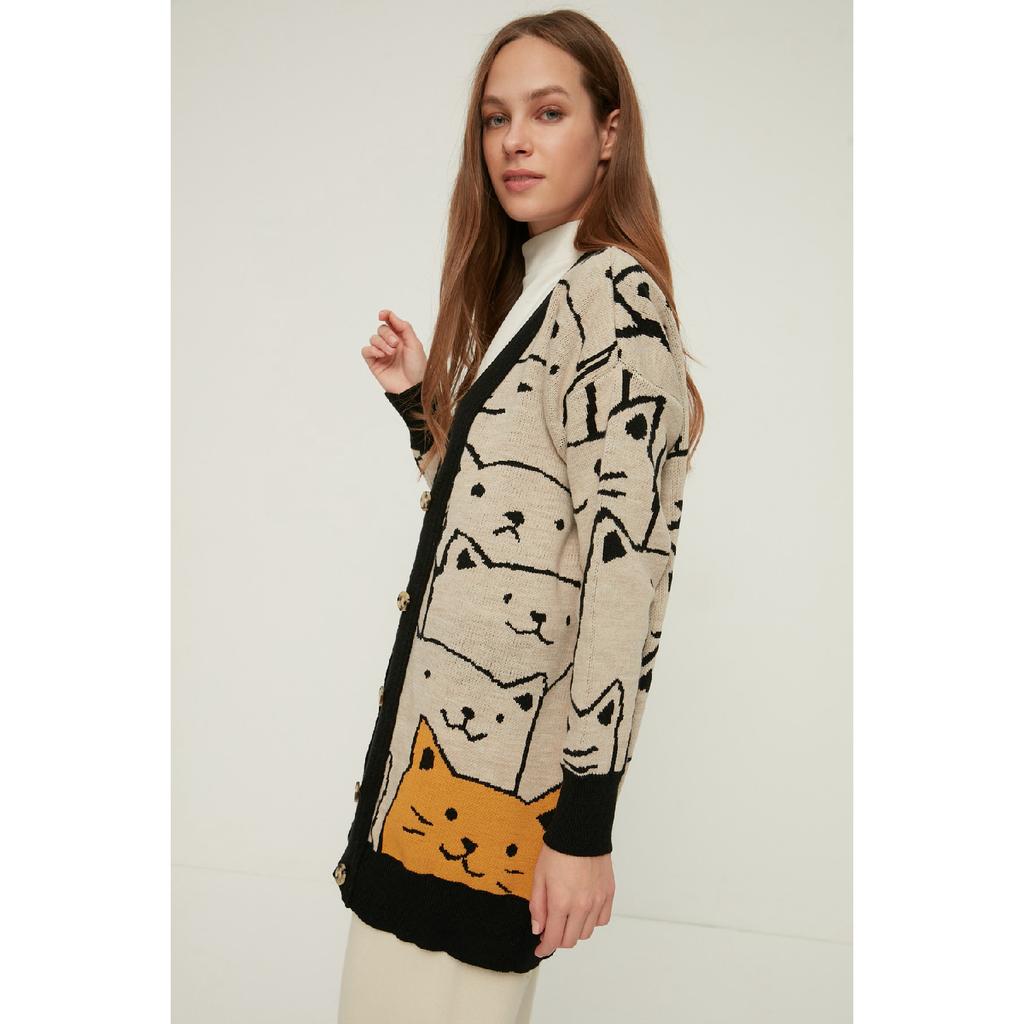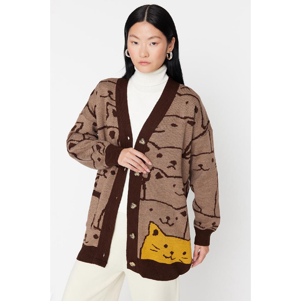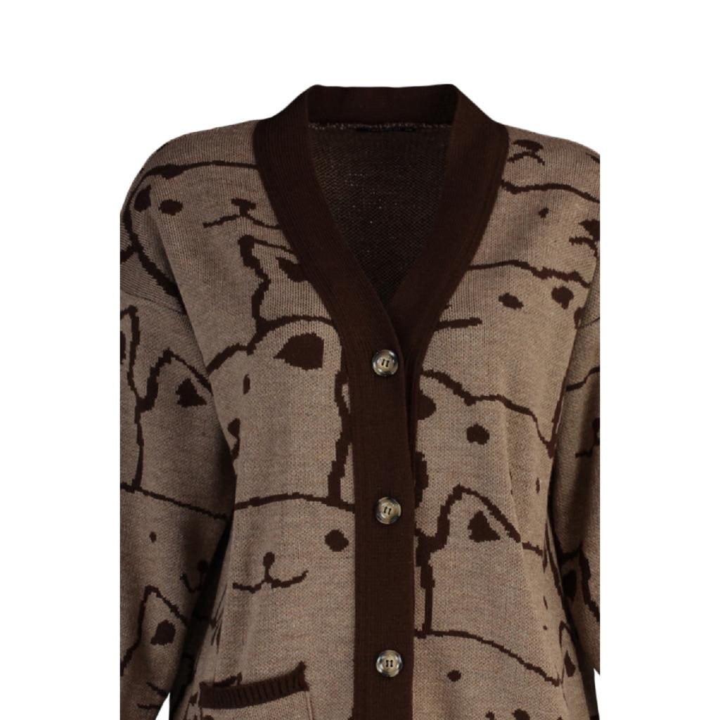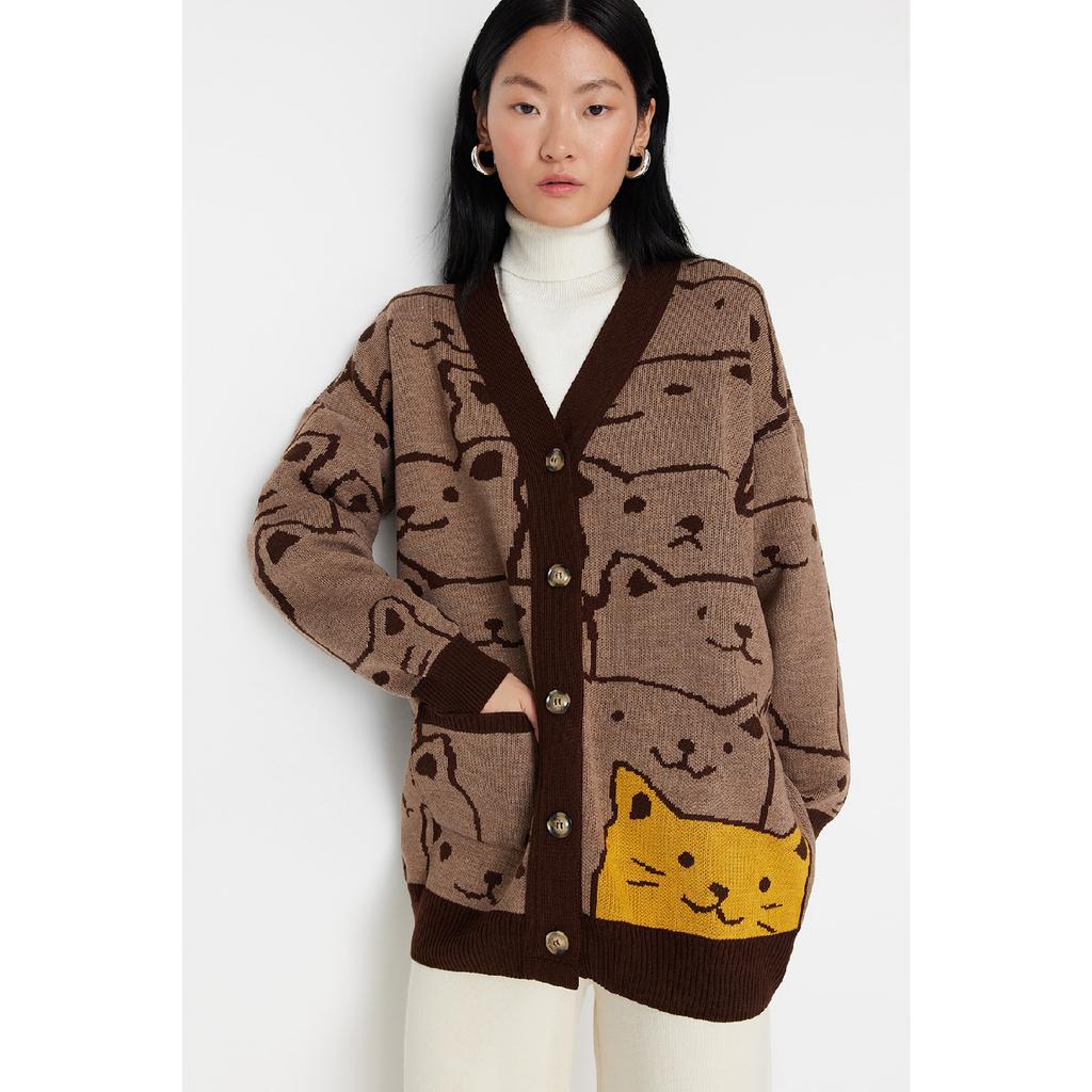 Бежевый трикотажный кардиган с рисунком животных Tctaw22th0135