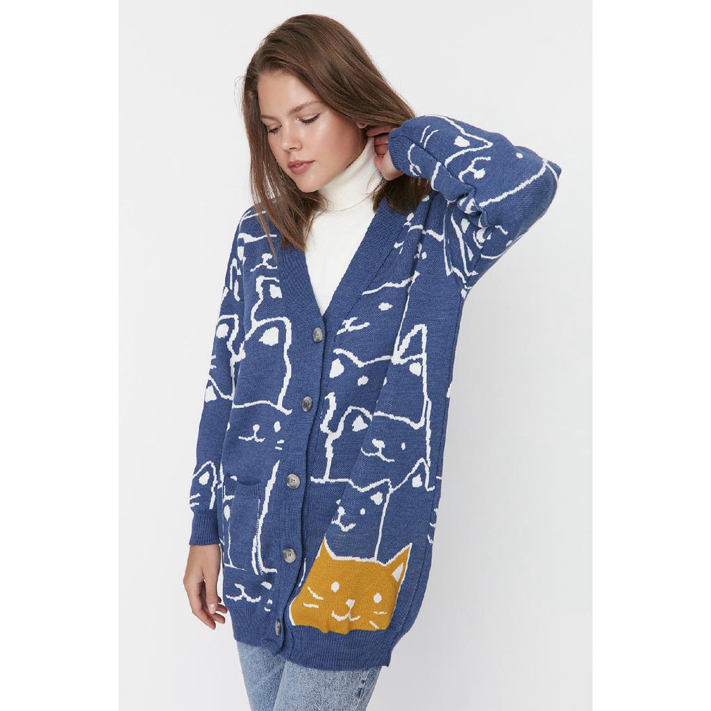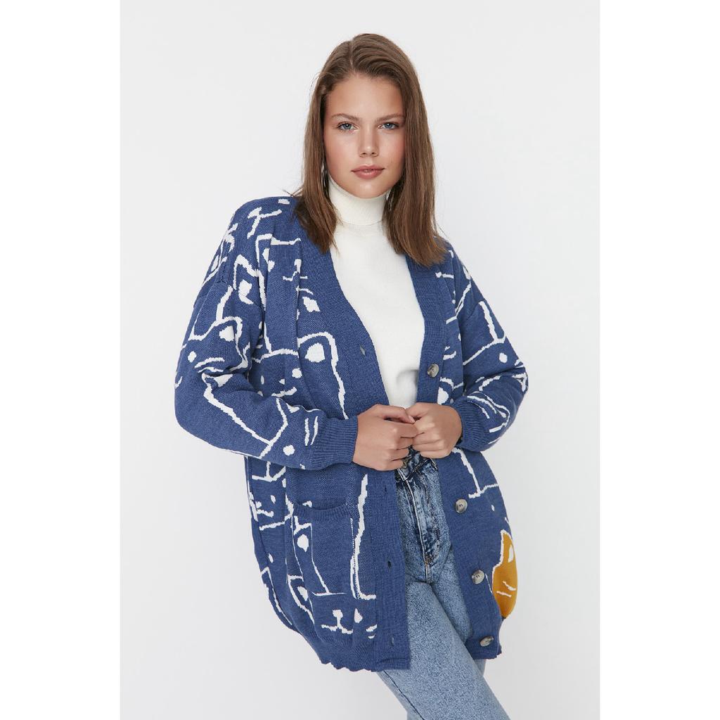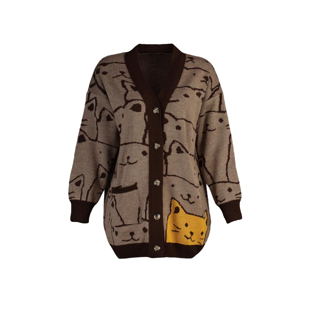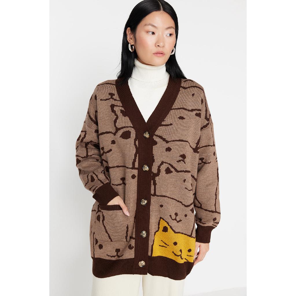 Бежевый трикотажный кардиган с рисунком животных Tctaw22th0135