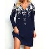 Женское модное повседневное платье с v-образным вырезом и длинными рукавами, женское свободное платье с цветочным принтом, женская одежда