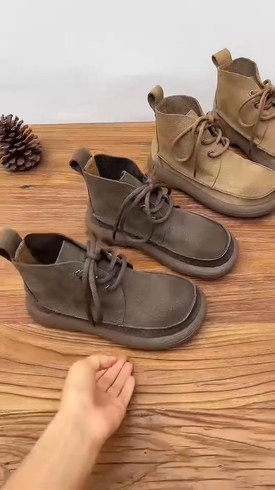 Johnature, женские короткие сапоги ручной работы в стиле ретро, туфли из натуральной кожи, однотонные ботинки на шнуровке с круглым носком — купить товар онлайн с бесплатной доставкой по всему миру!
